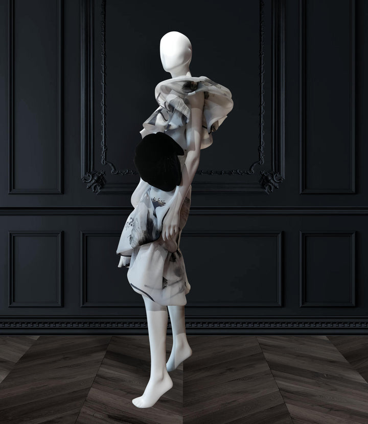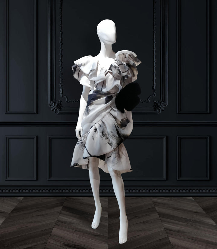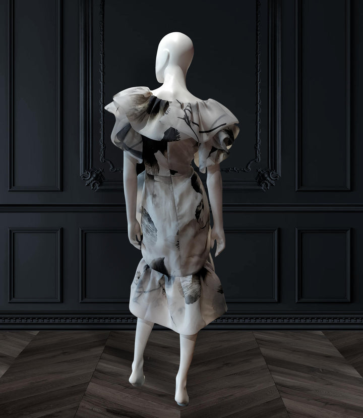 Layered bubble ruffle overlapping skirt dress with ruffle