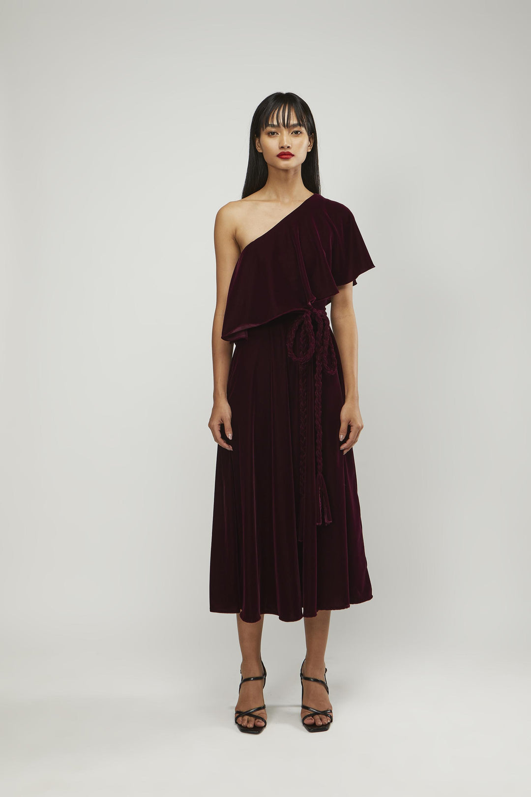 ONE SHOULDER TWISTED STRAP DRAPED MIDI