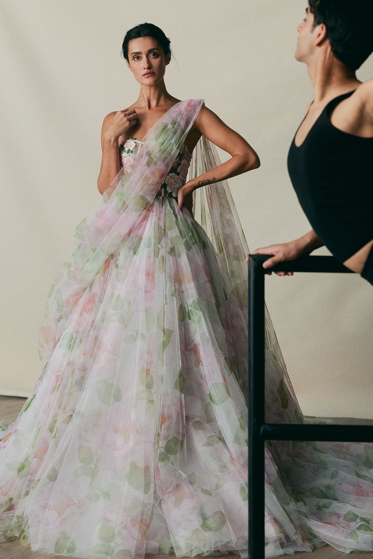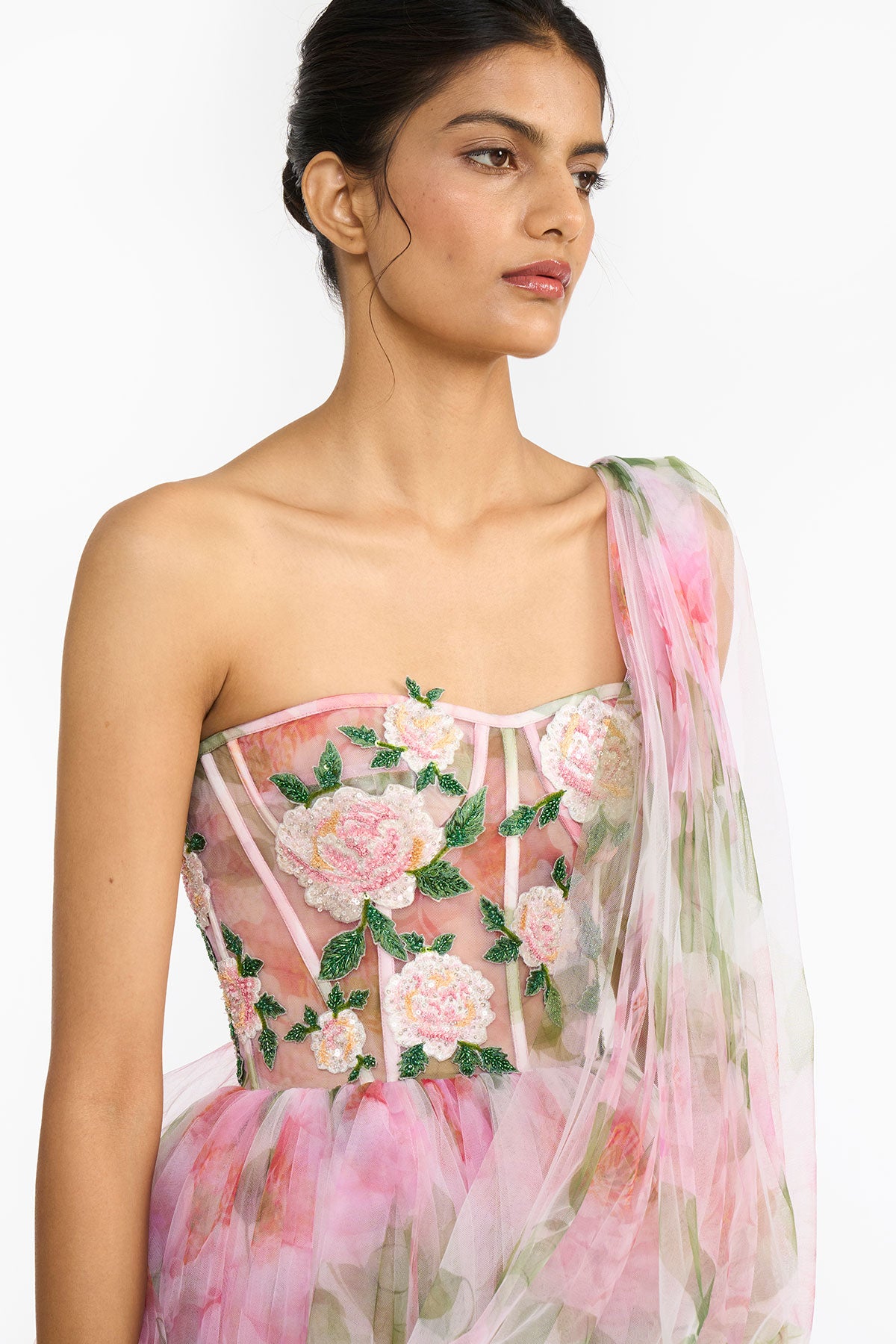 Pink Indian Rose Lehenga Saree With Embroidered Corset