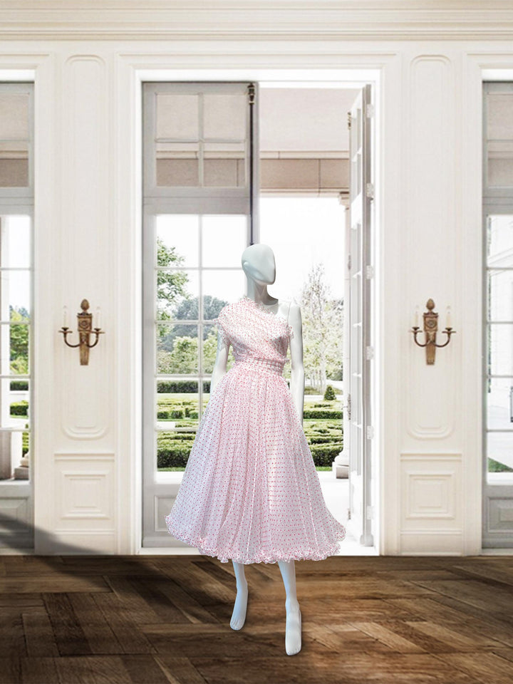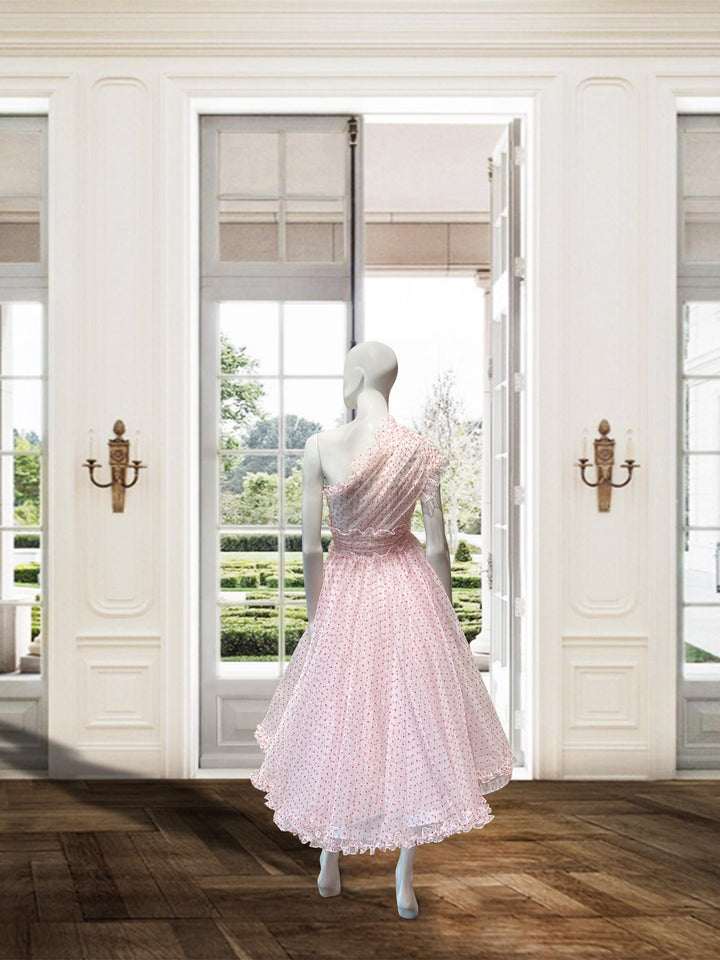 One shoulder midi with organza frill detailing