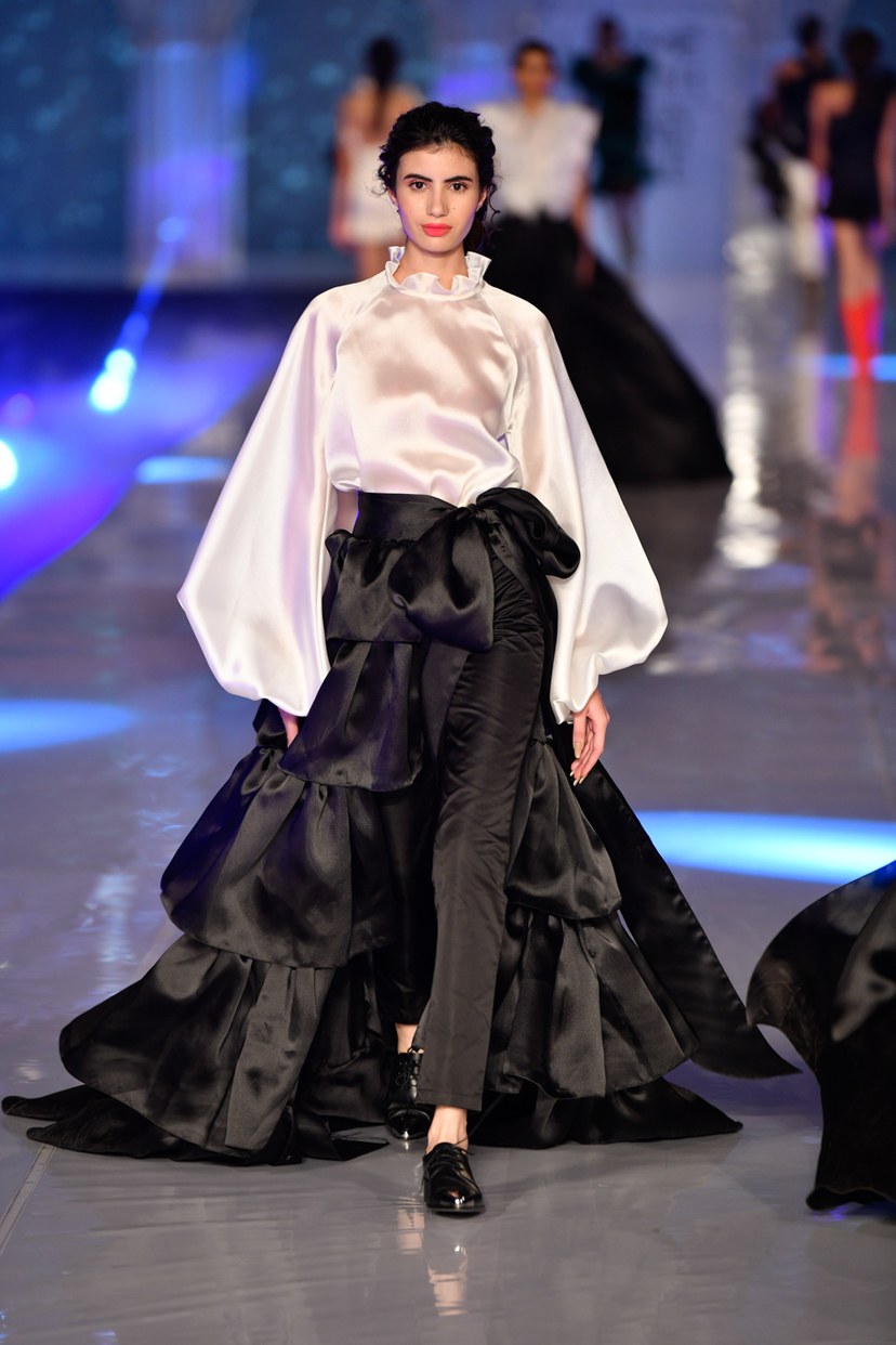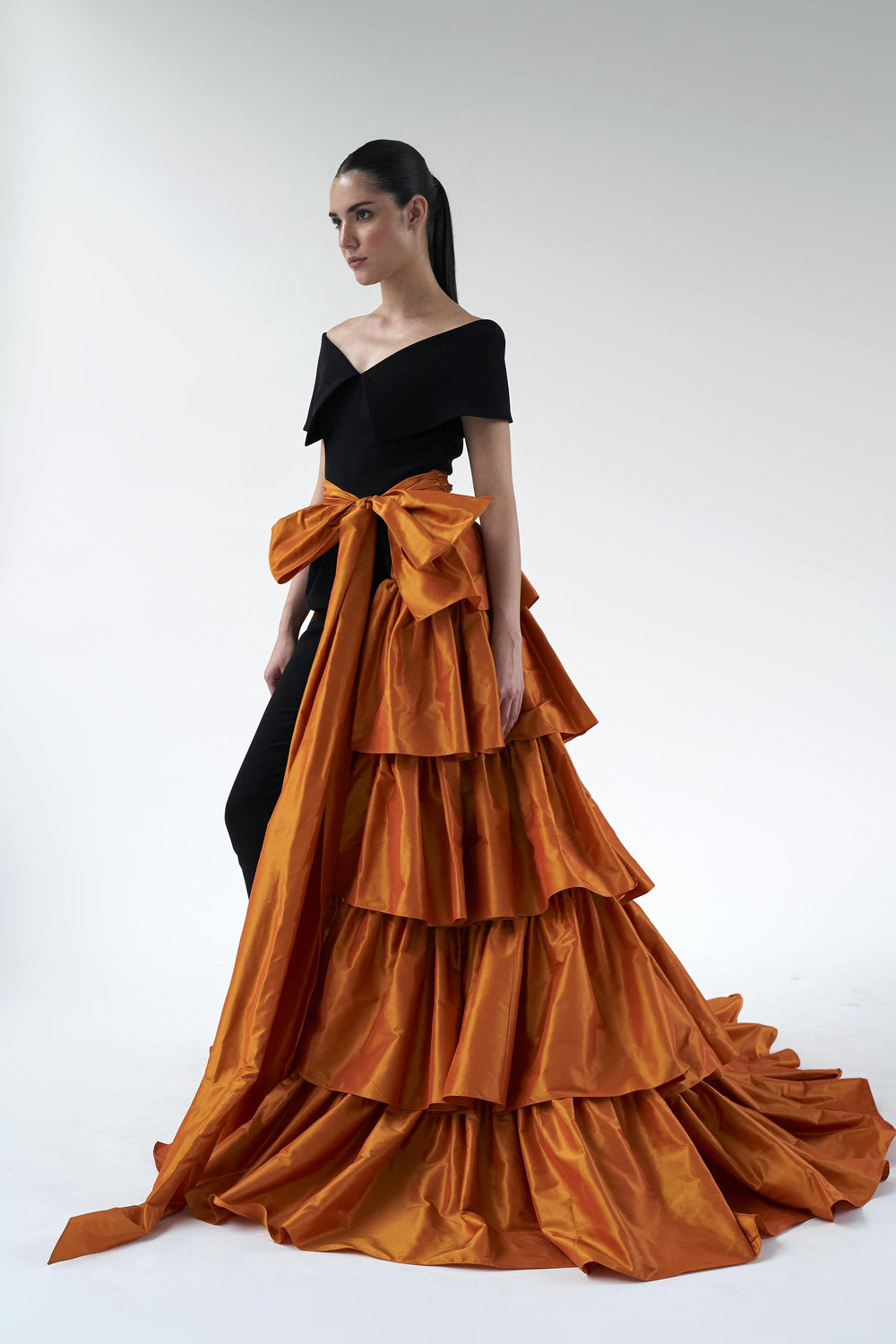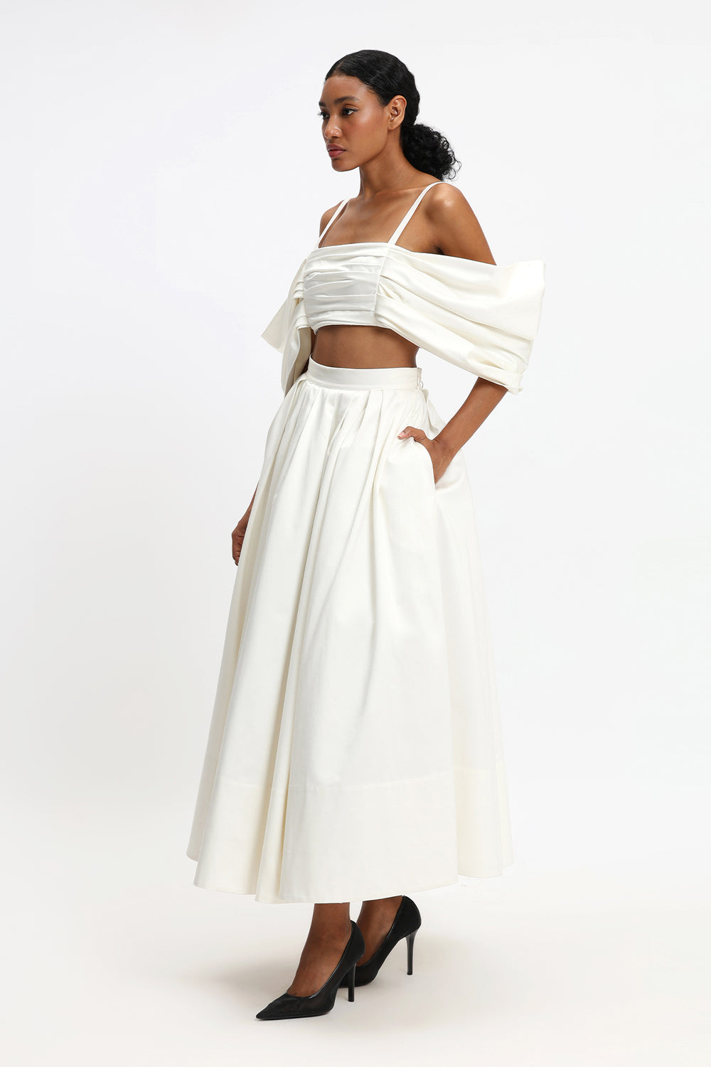 Tea Length Skirt Featuring Gathered Waist with Lifted Hem