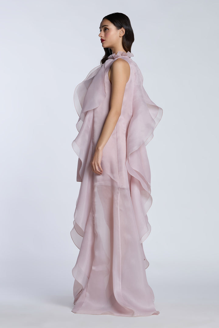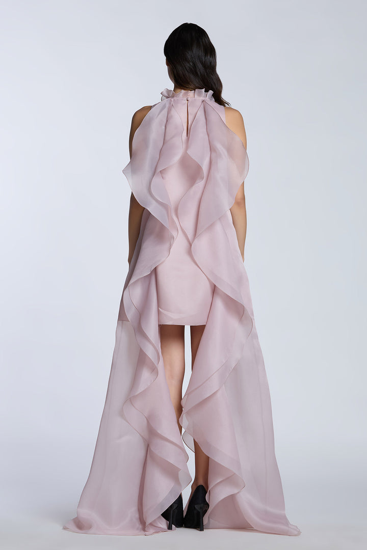 High Low Shift Dress with Cascading Ruffles