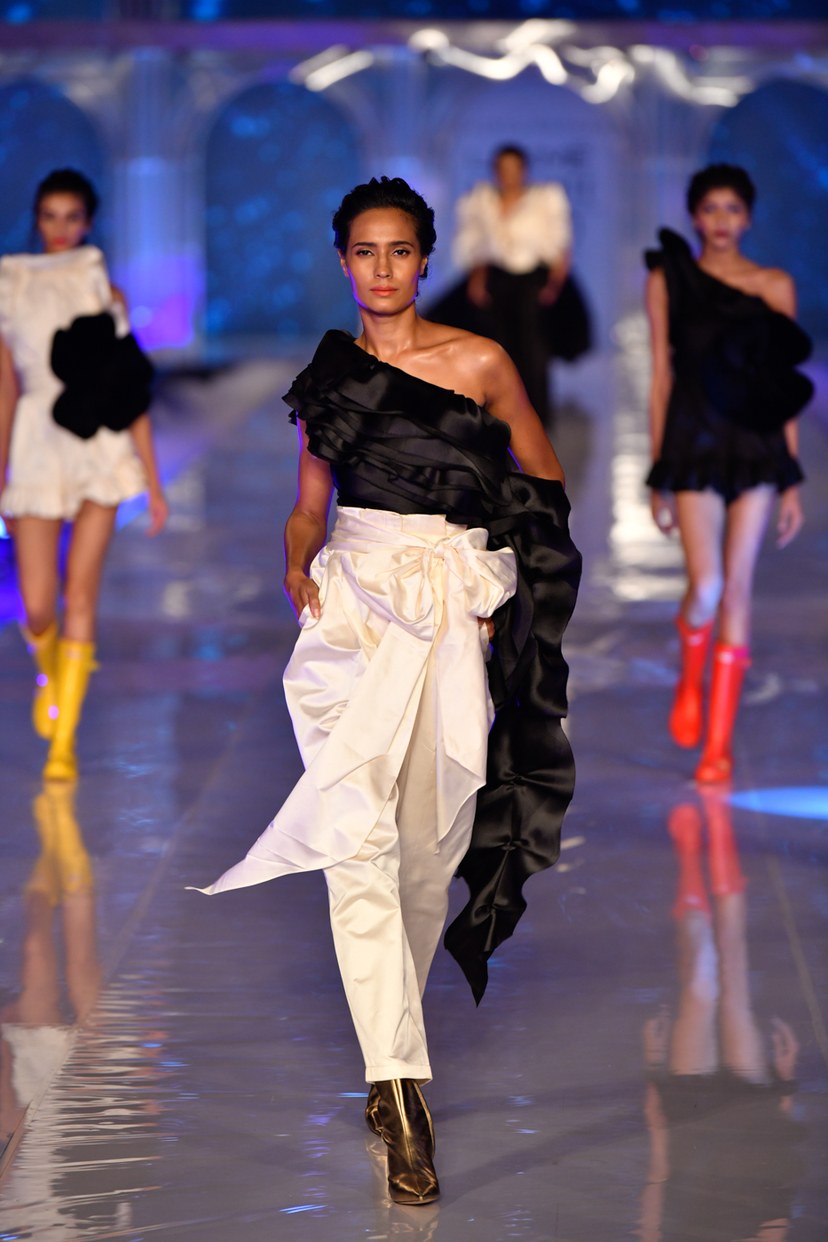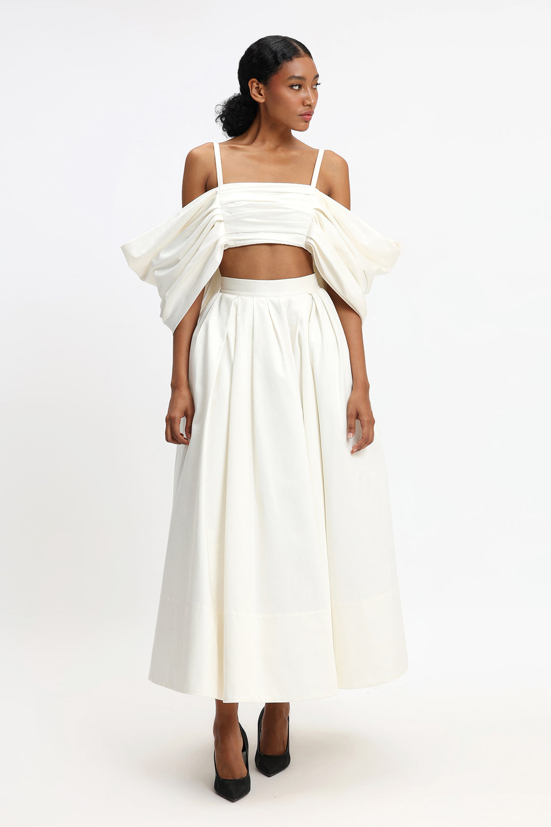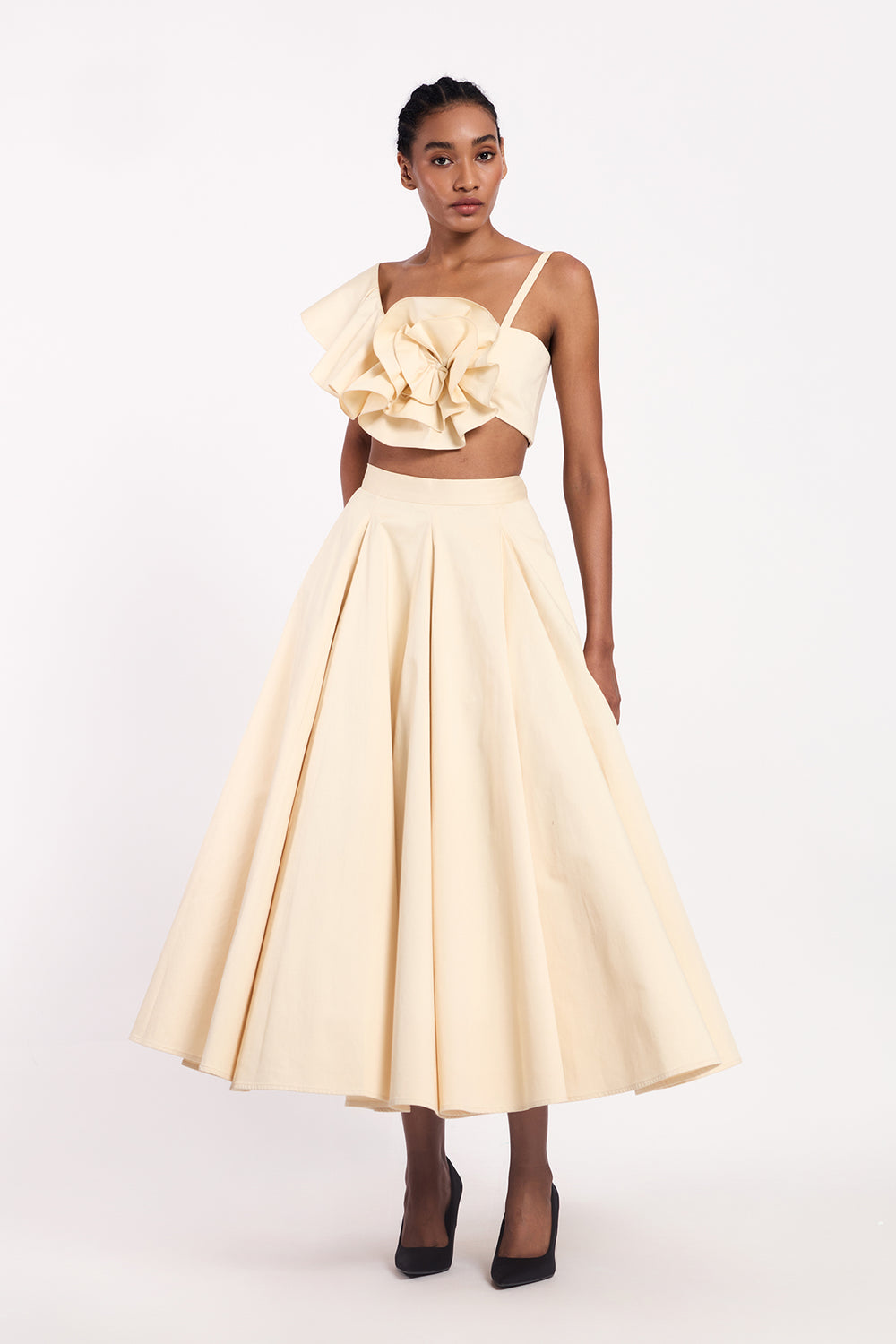 CORSETTED ONE SHOULDER RUFFLE TOP