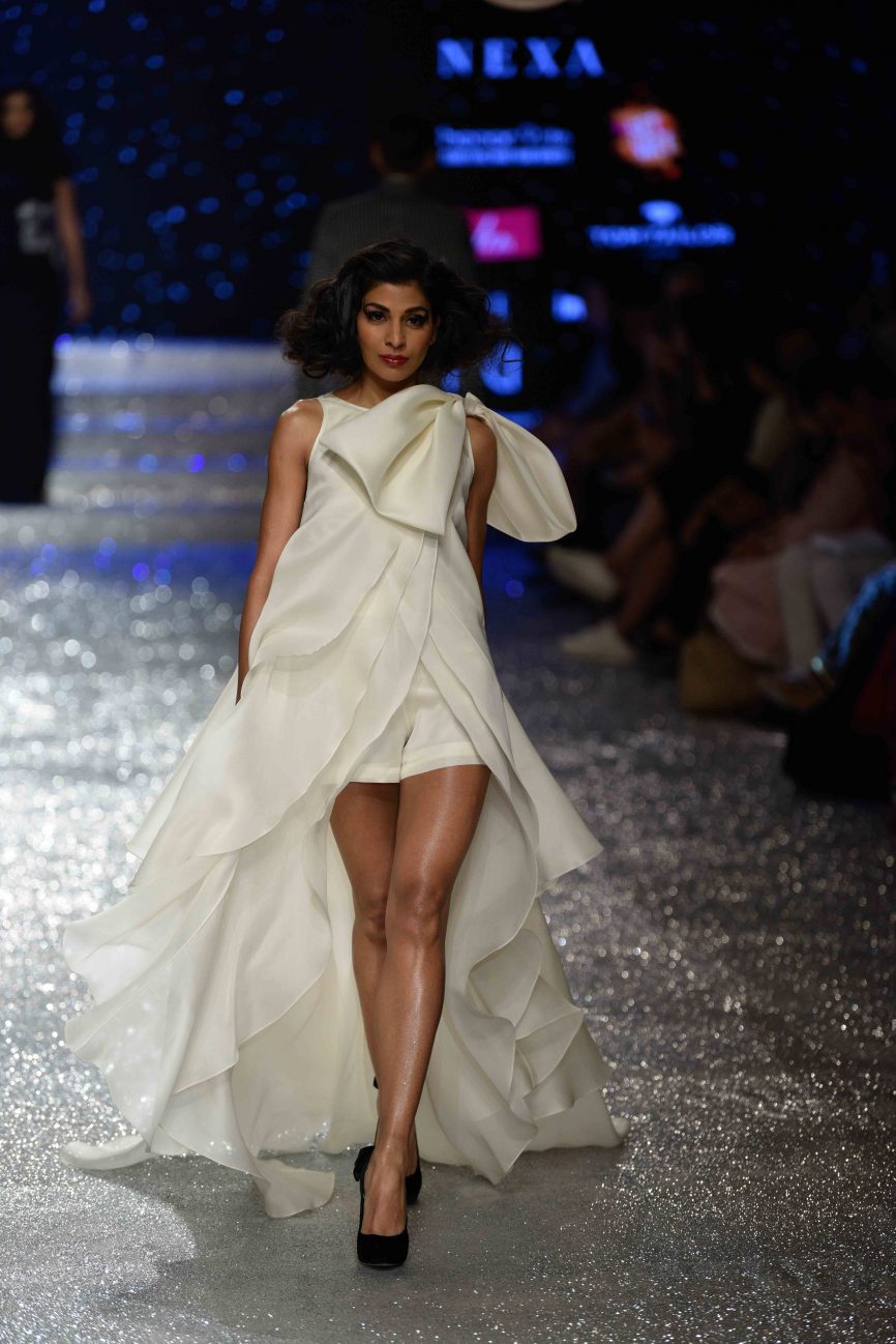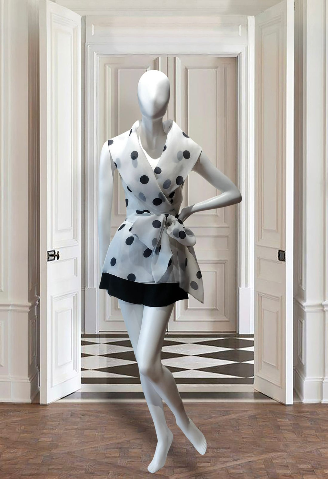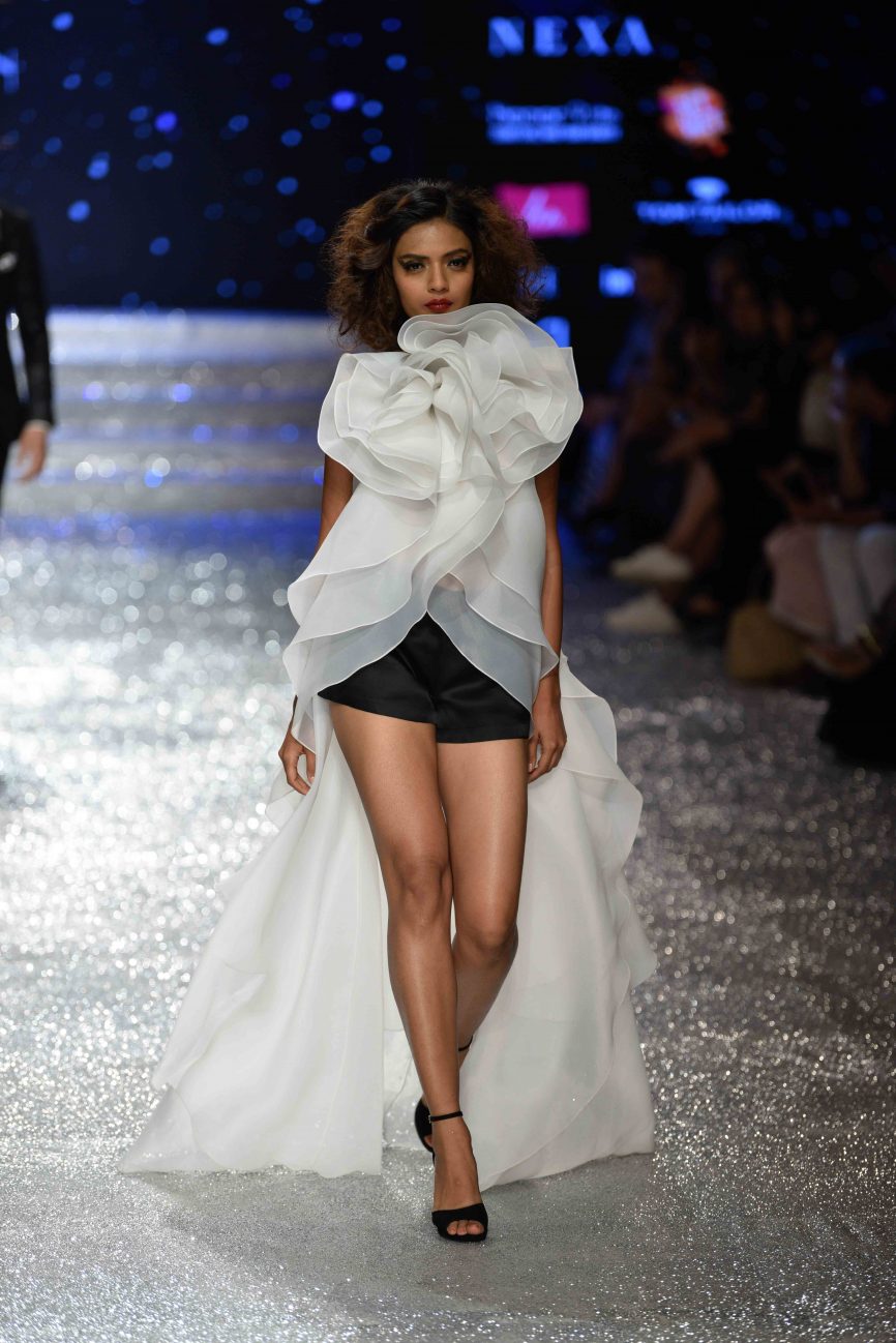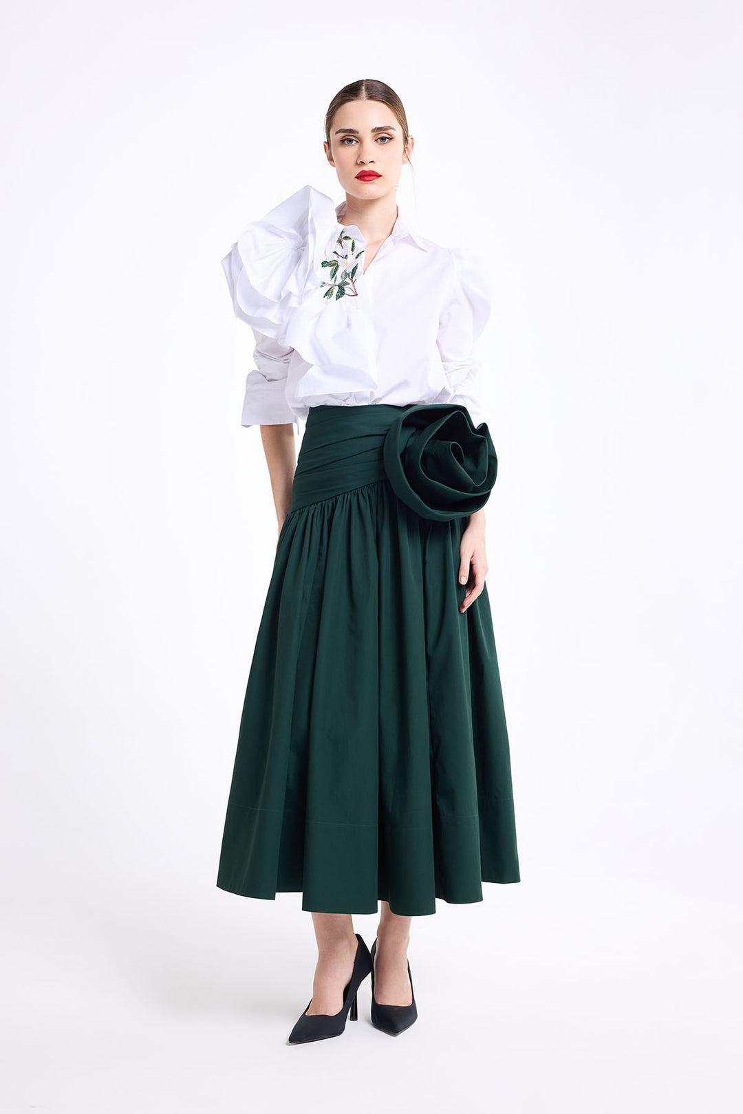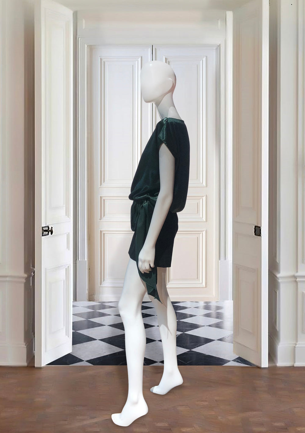 One shoulder fitted peplum top with two diagonal frills and side trail
