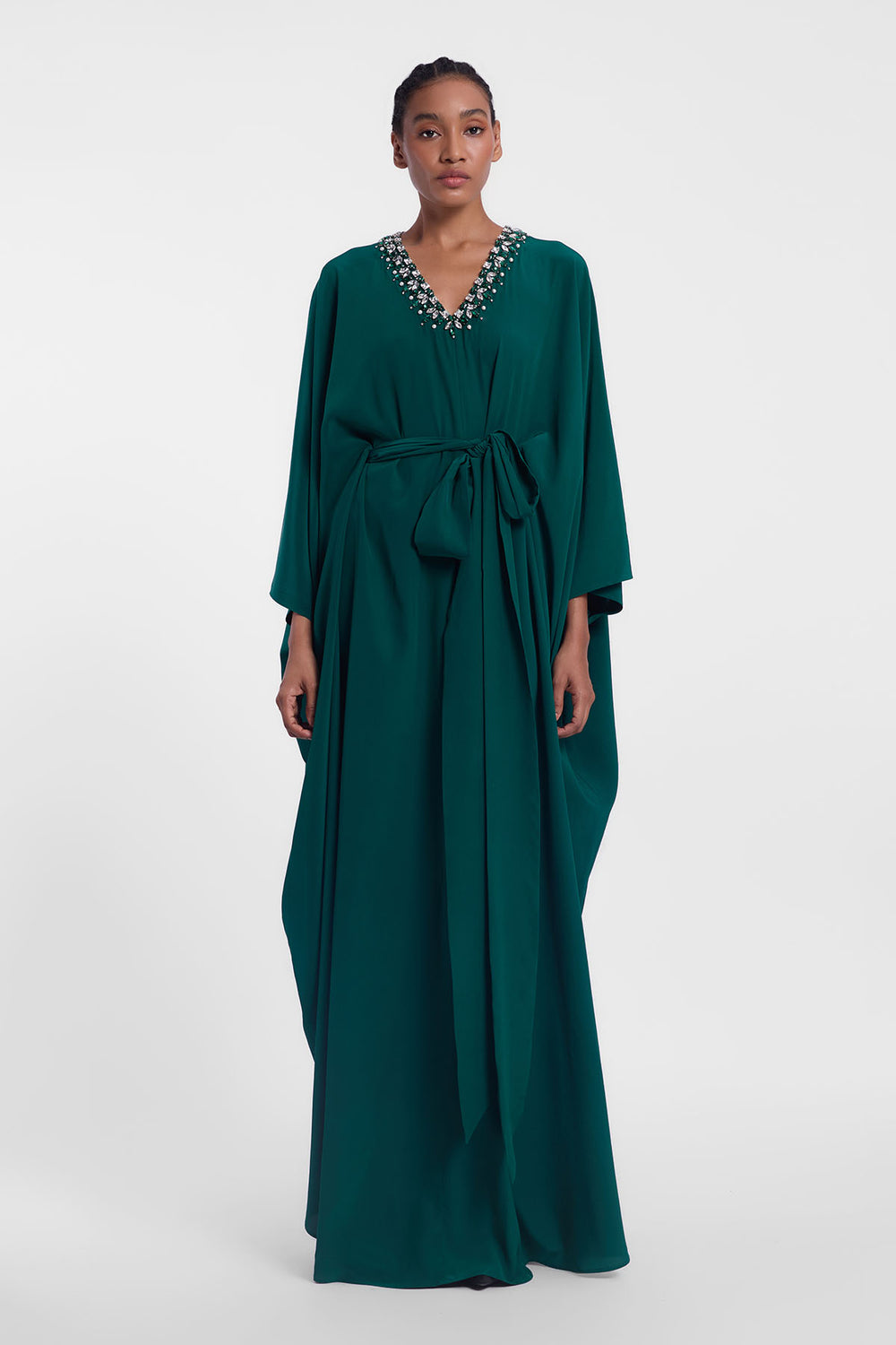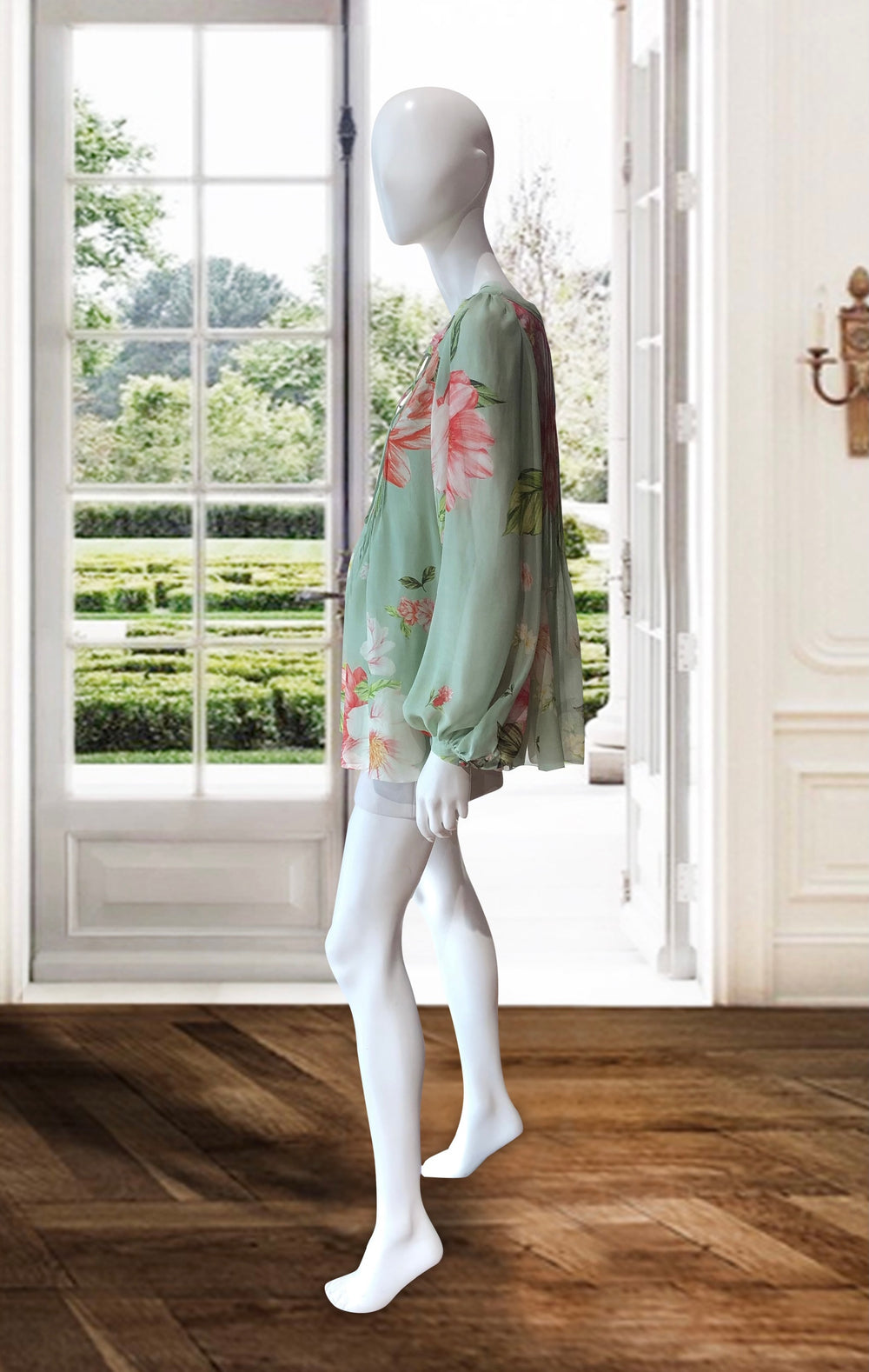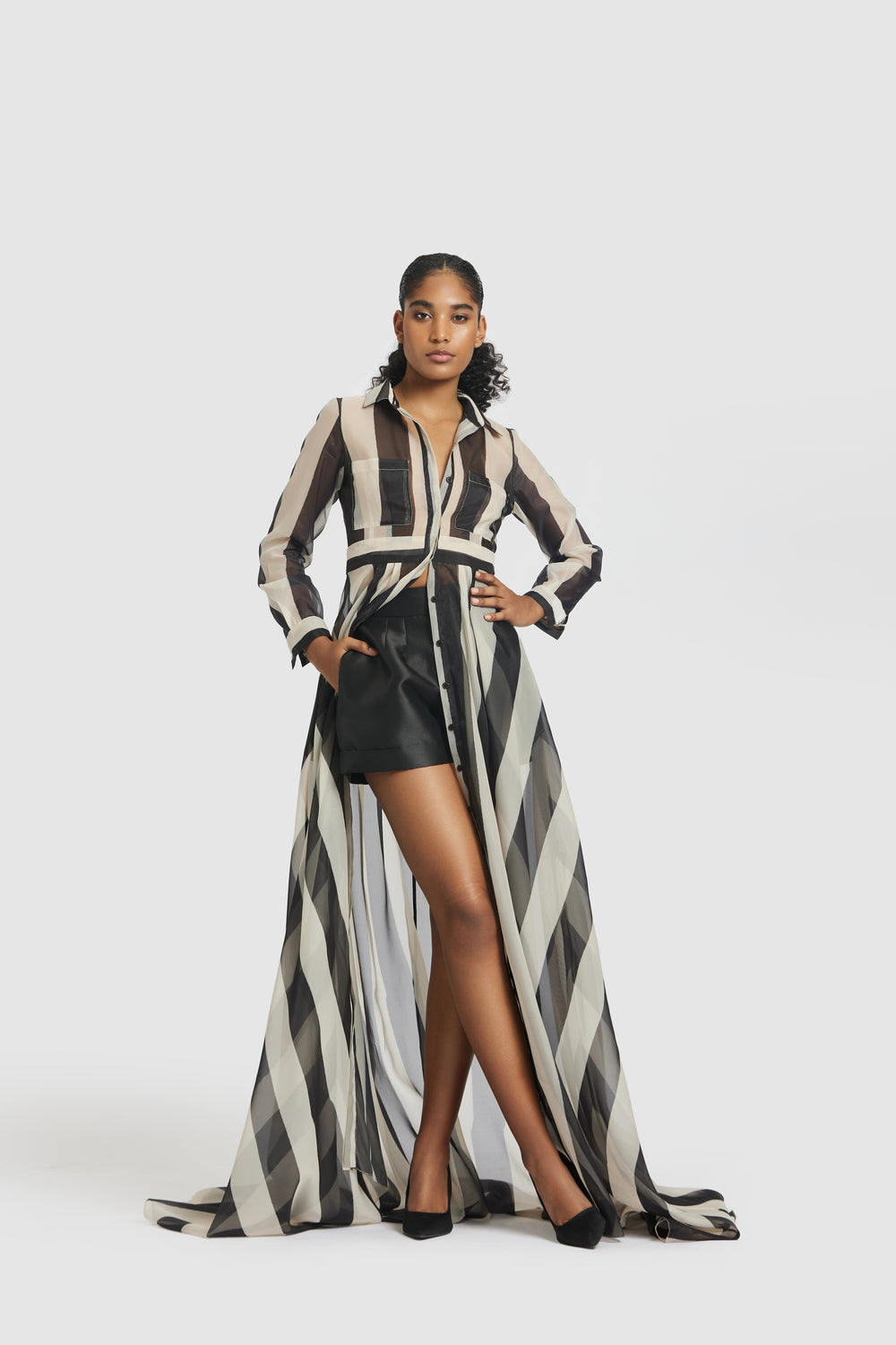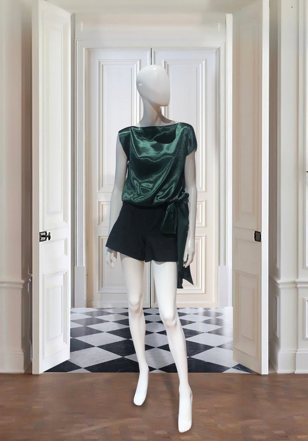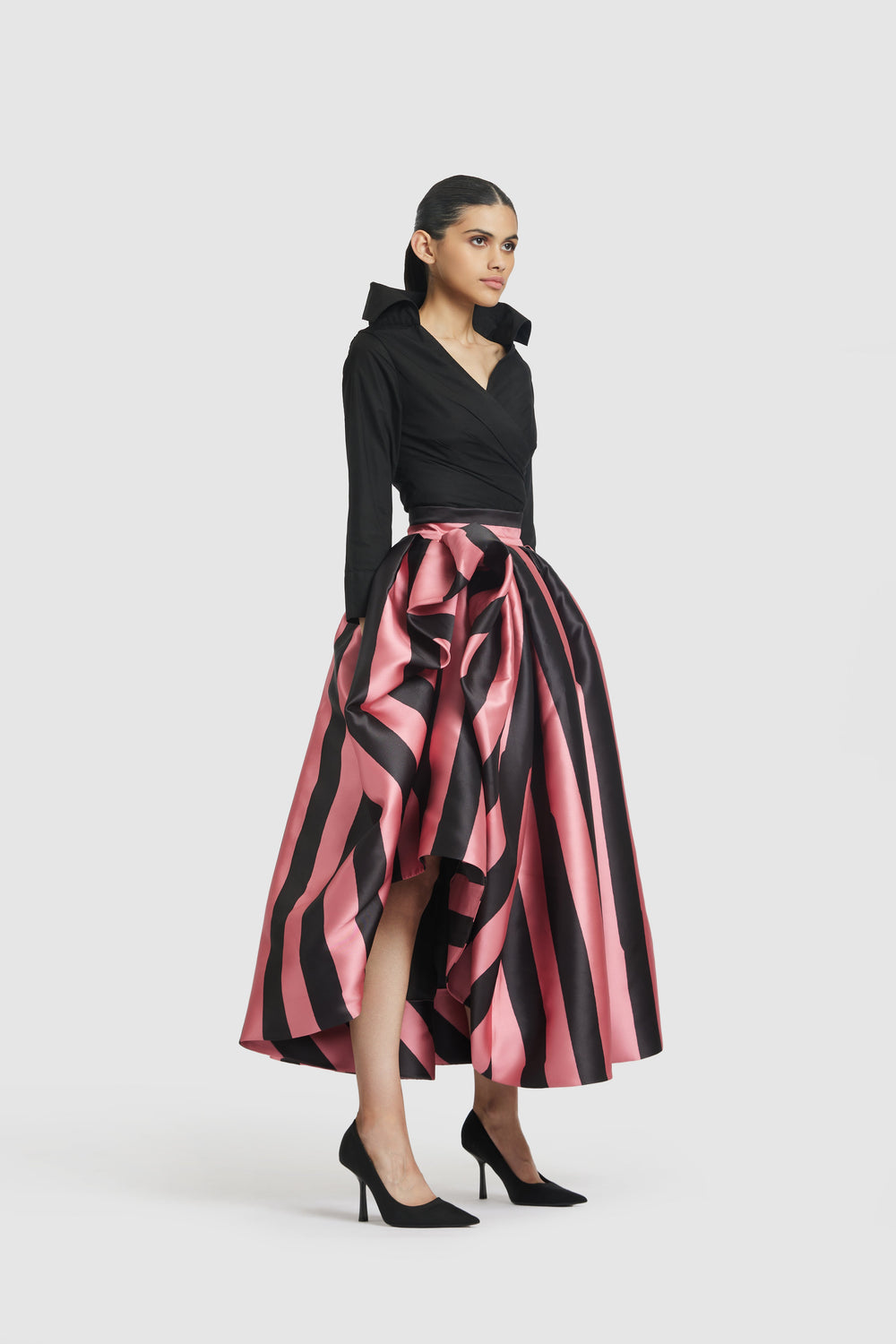 Corsetted high low peplum top with shoulder drape and klimt embroidery