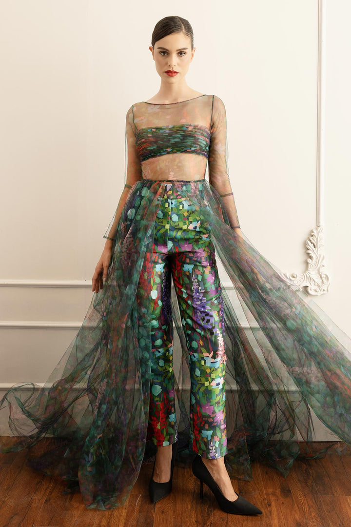 Boat Neck Top with Extended Trail and Drape Detail at The Bust