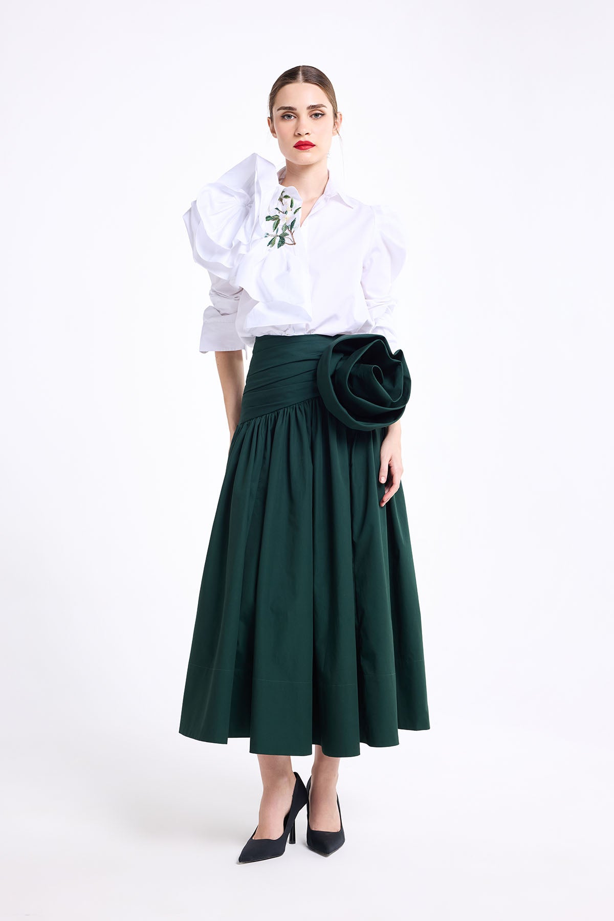 POUF SLEEVES RUFFLED FLOWER SHIRT WITH BOTANICAL THREAD EMBROIDERY