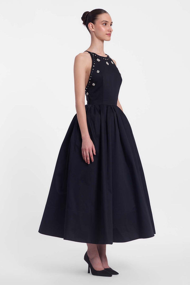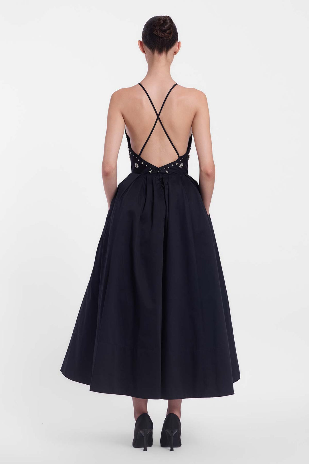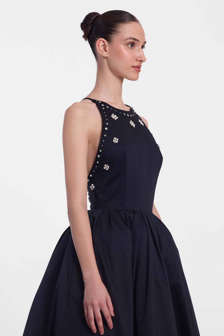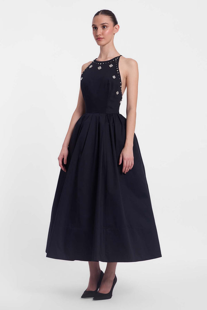 Backless Halter Neck Midi with Pearl and Crystal Embroidery.