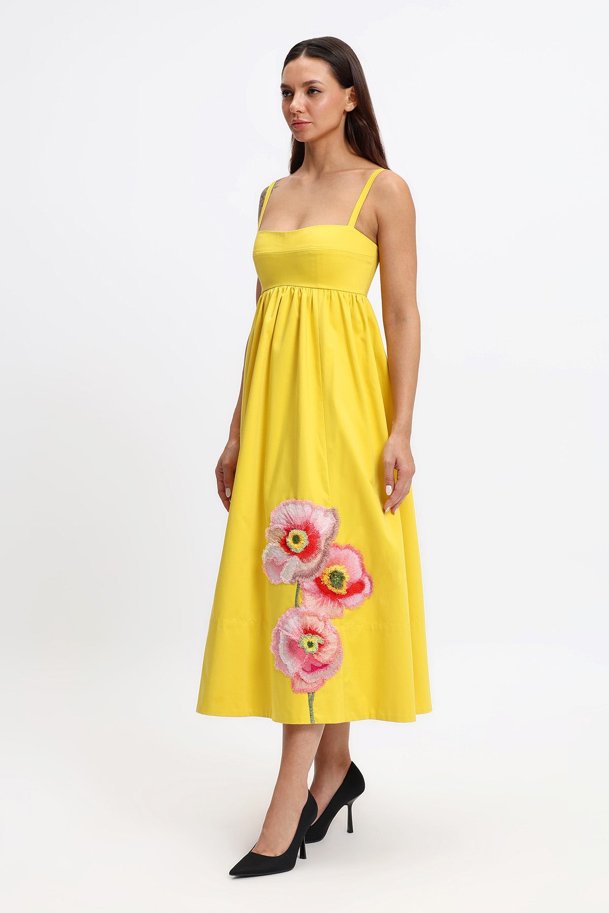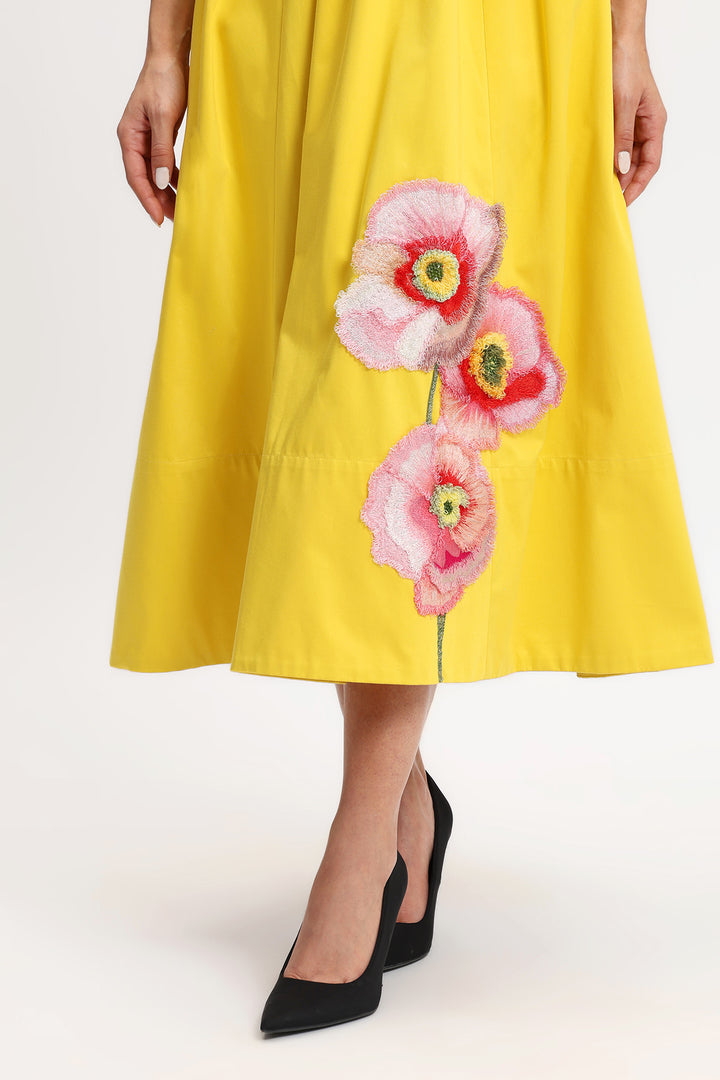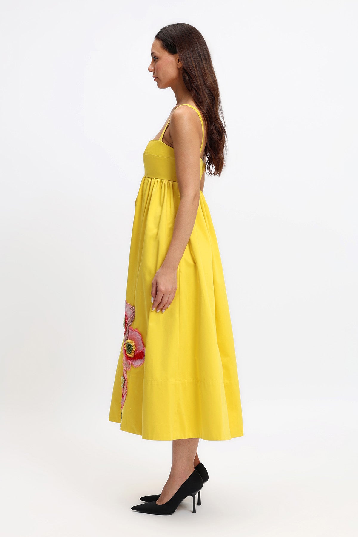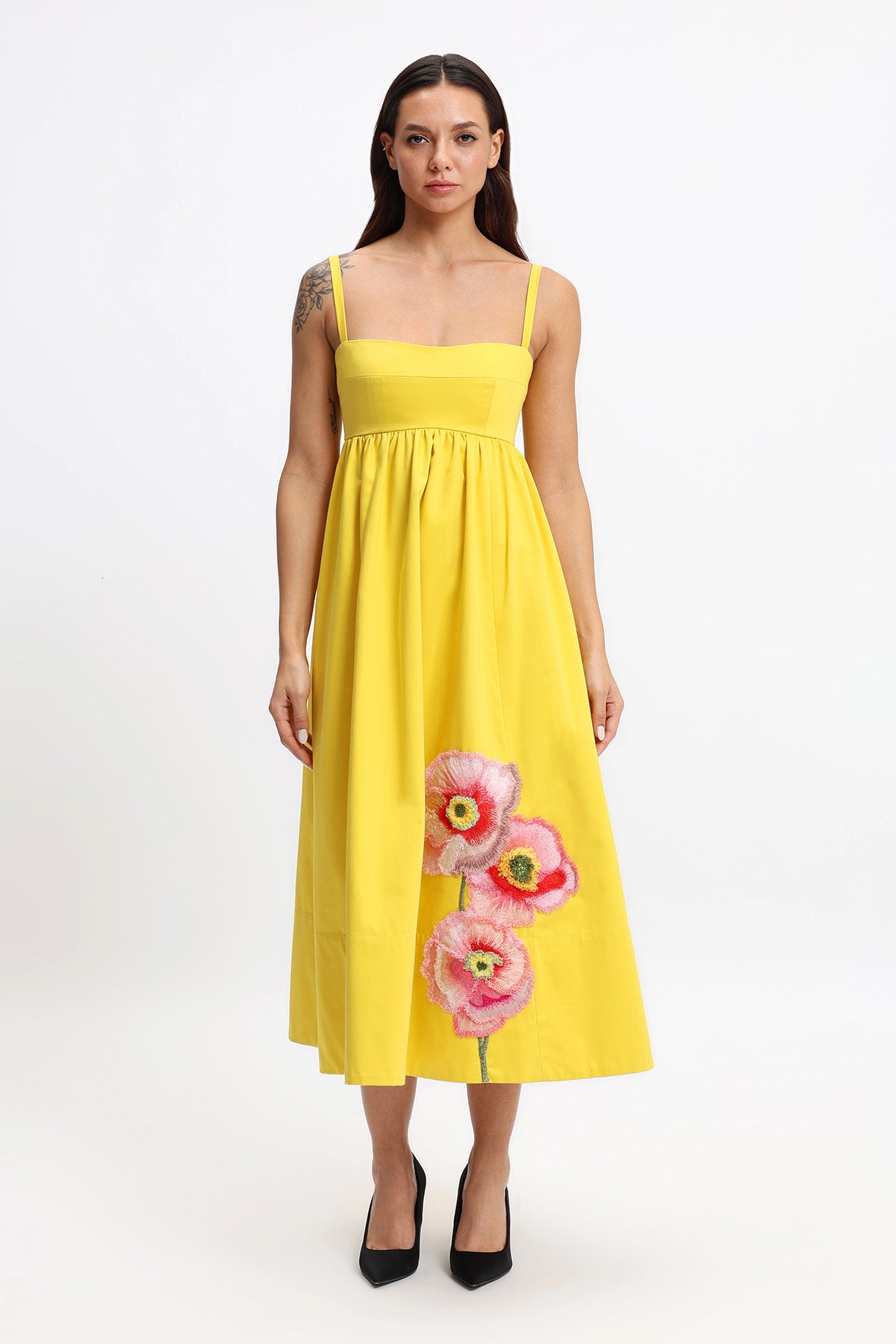 Empire Cut Midi with Hand Embroidered Flower on Hem