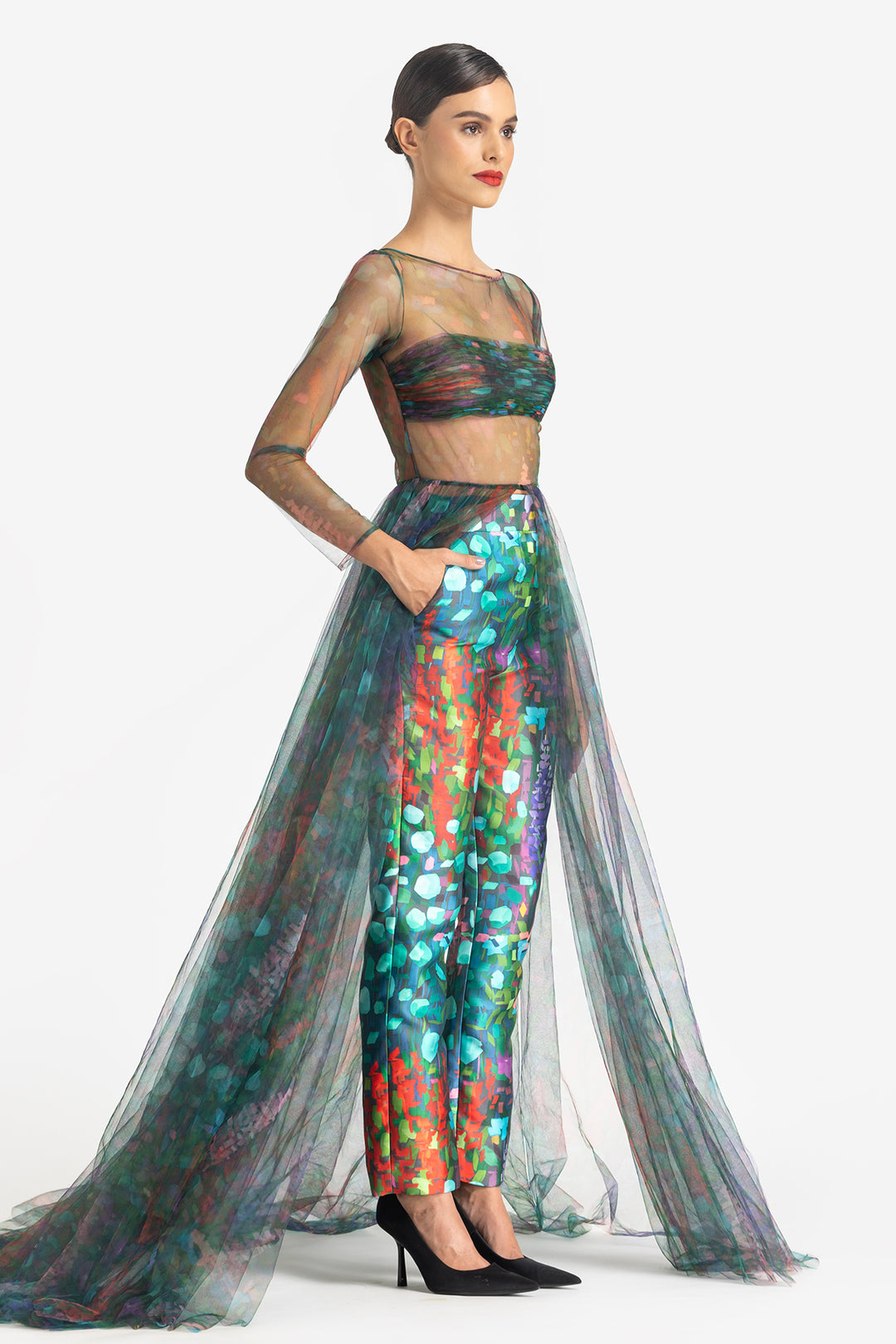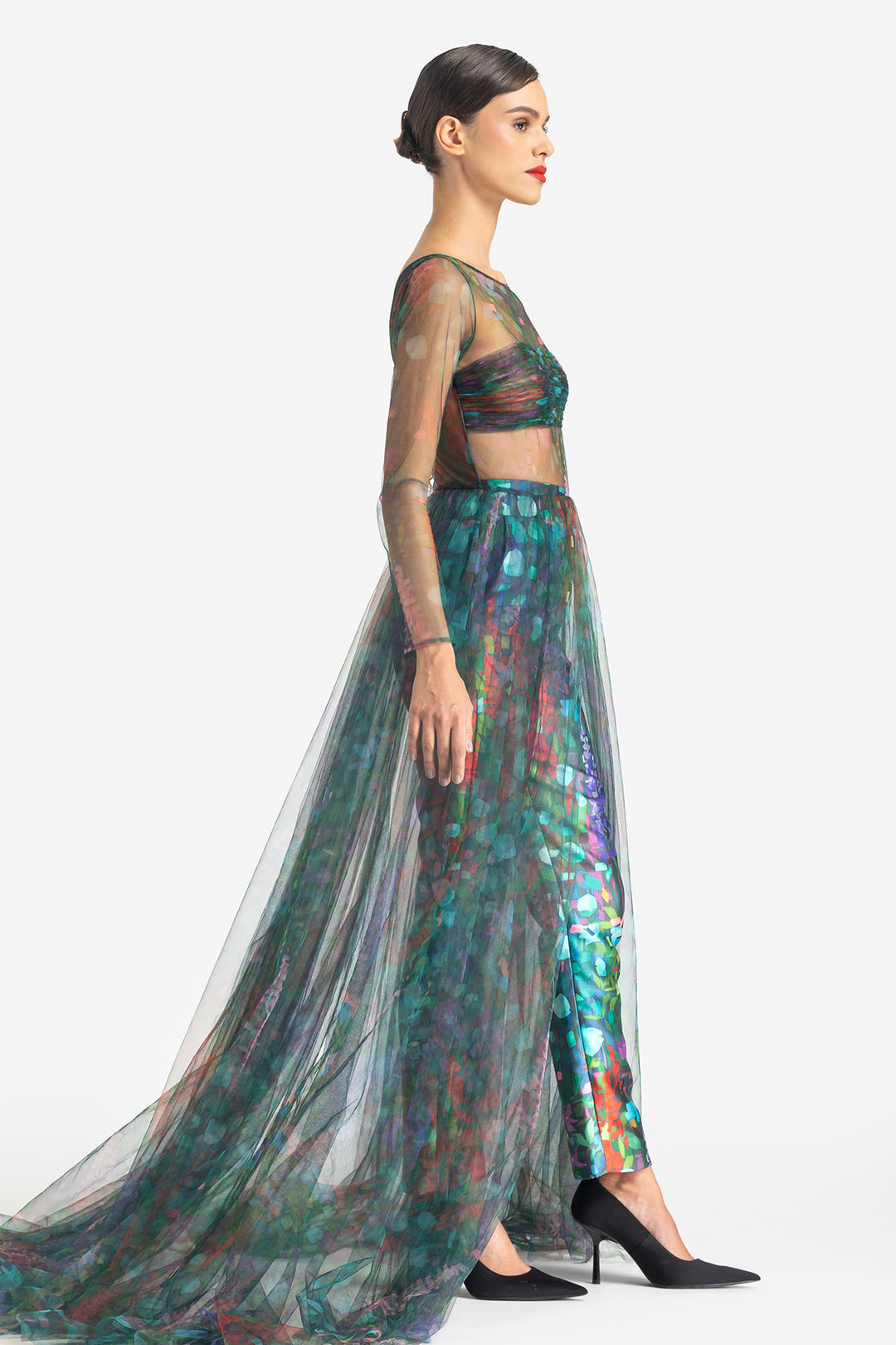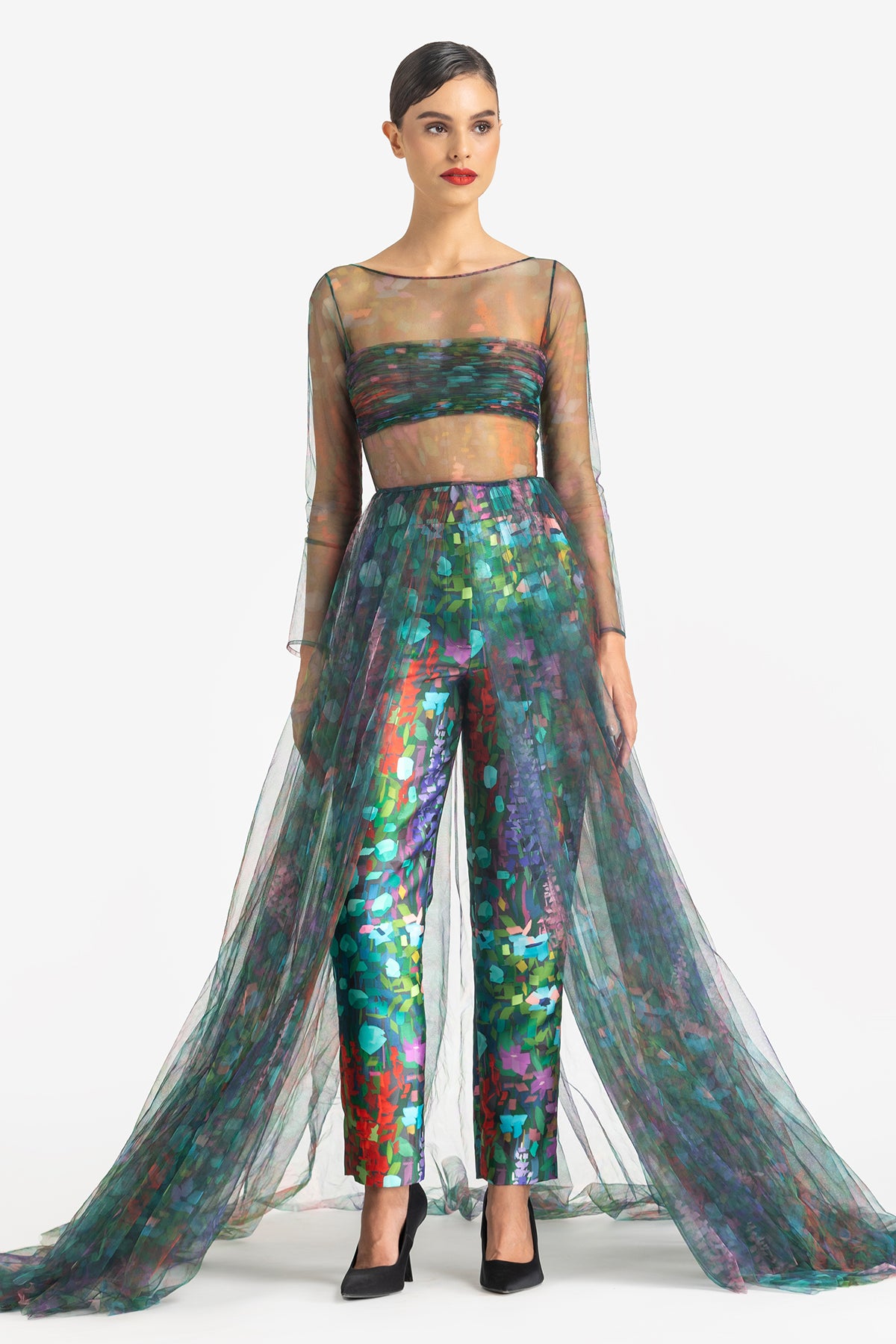 Boat Neck Top with Extended Trail and Drape Detail at The Bust