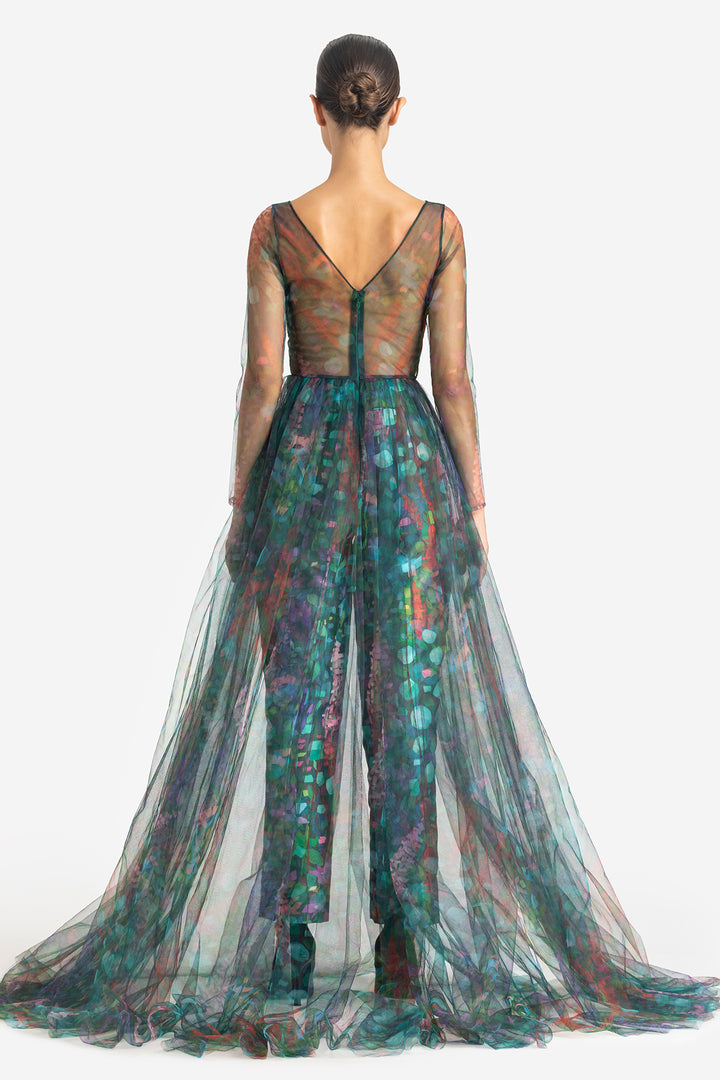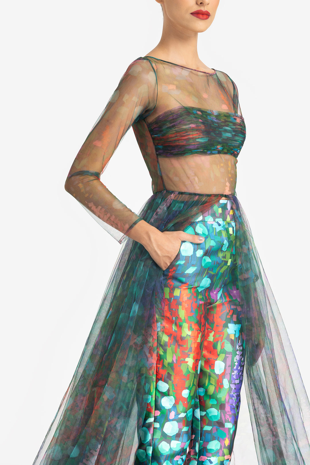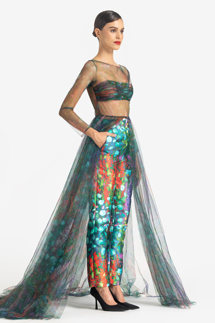 Boat Neck Top with Extended Trail and Drape Detail at The Bust