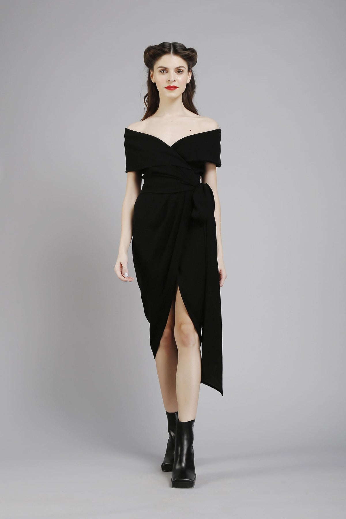 Shawl collar wrap dress