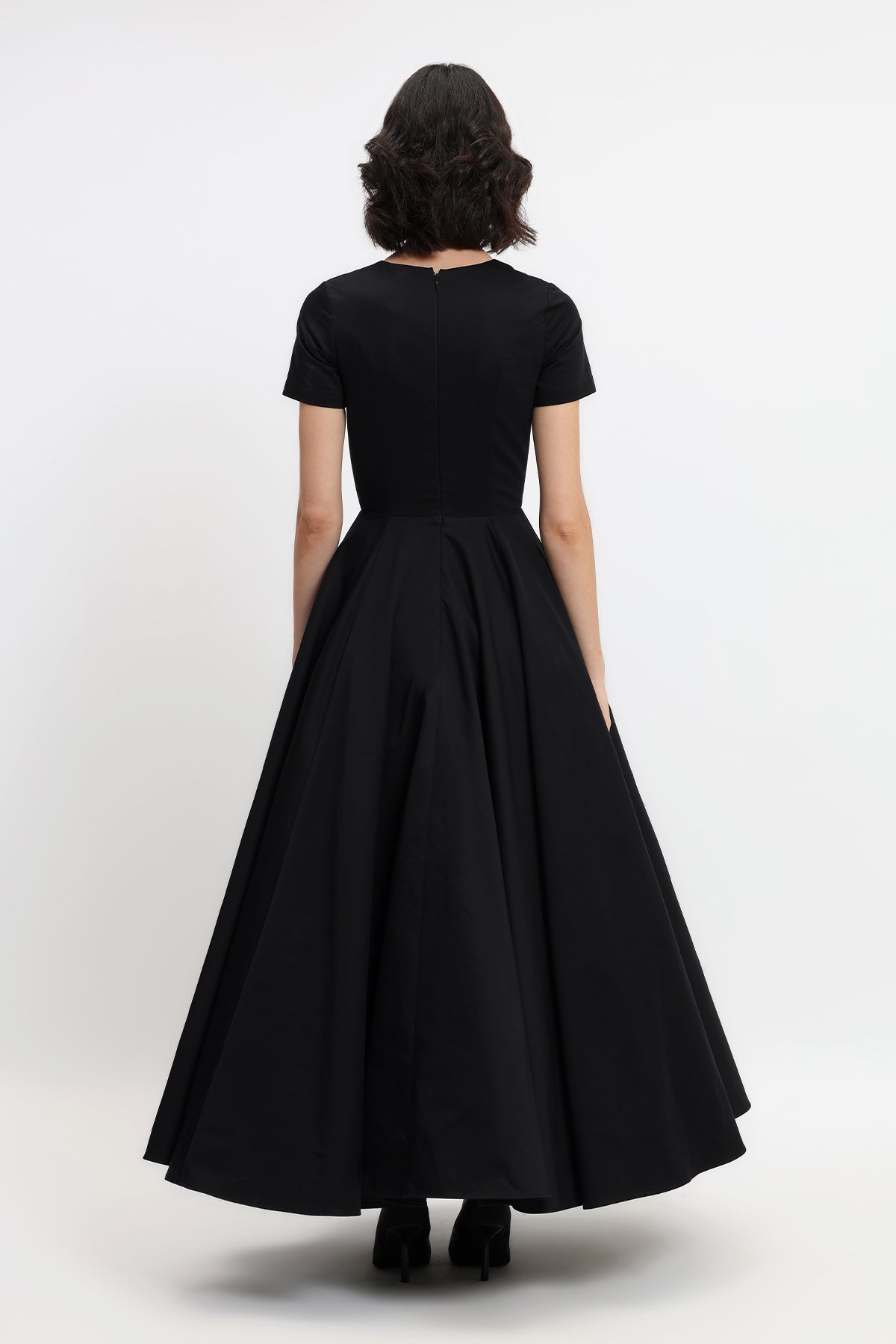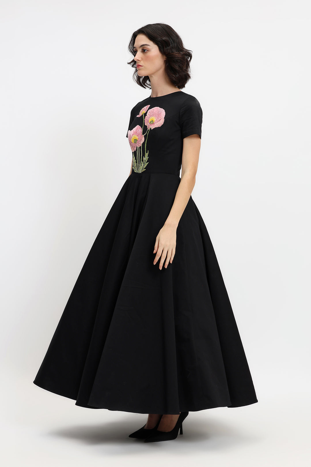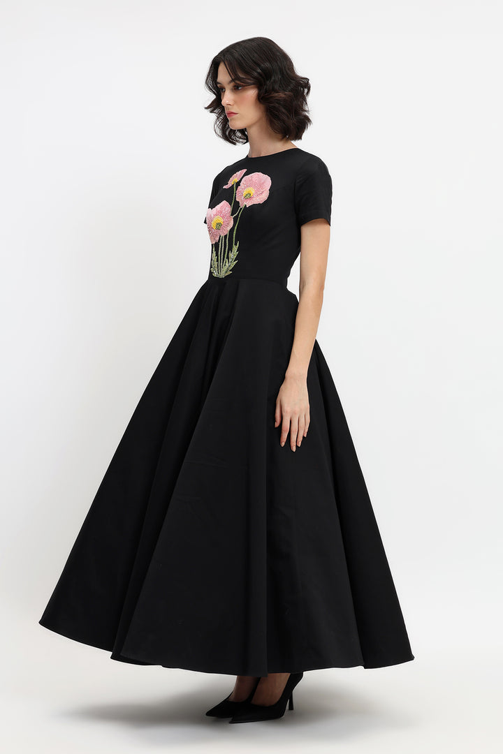 Cold Shoulder Jumpsuit with Drop Waisted Accentuated with Pearls and Crystals.