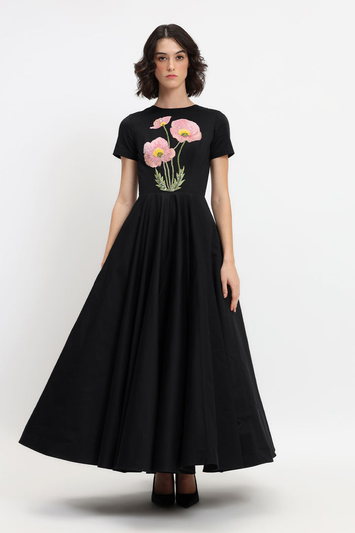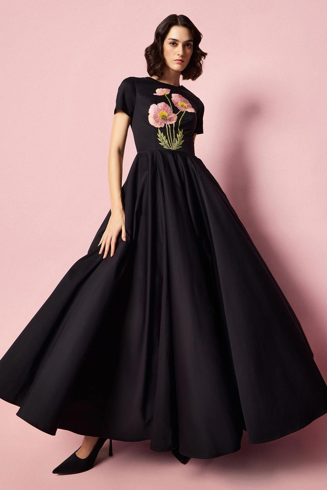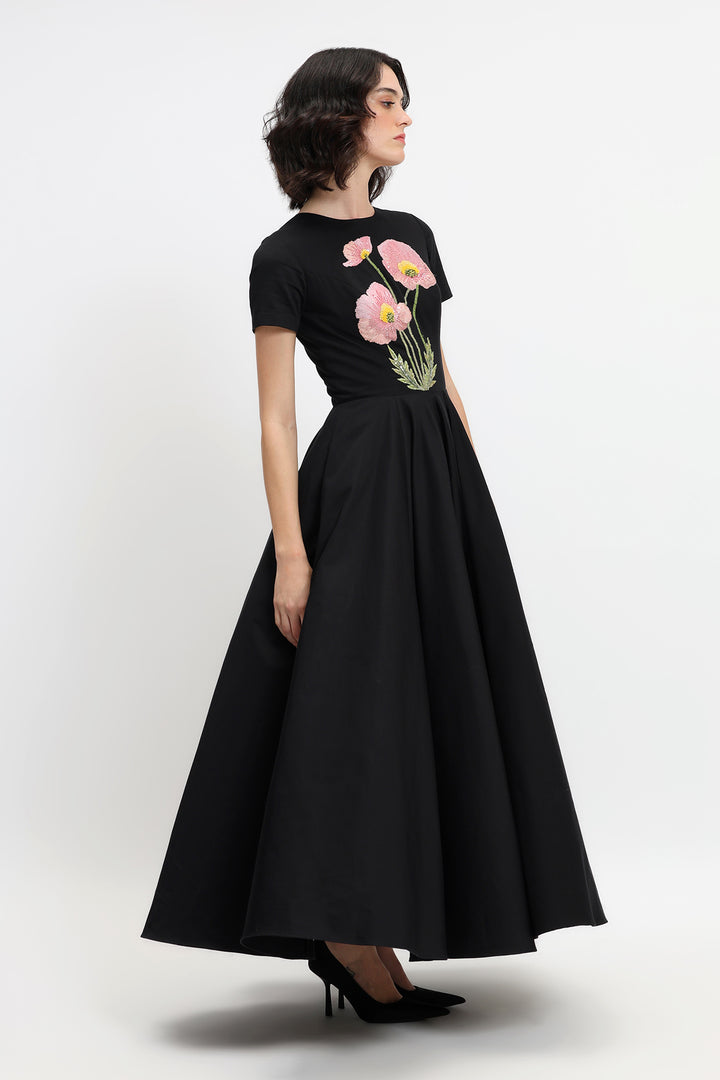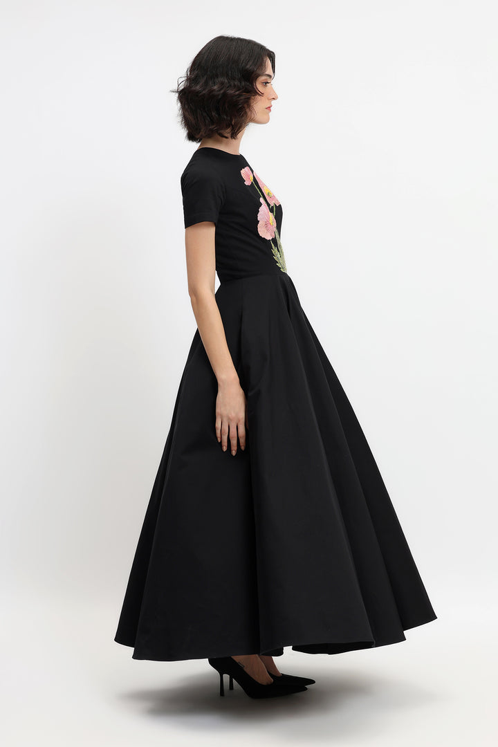 Cold Shoulder Jumpsuit with Drop Waisted Accentuated with Pearls and Crystals.