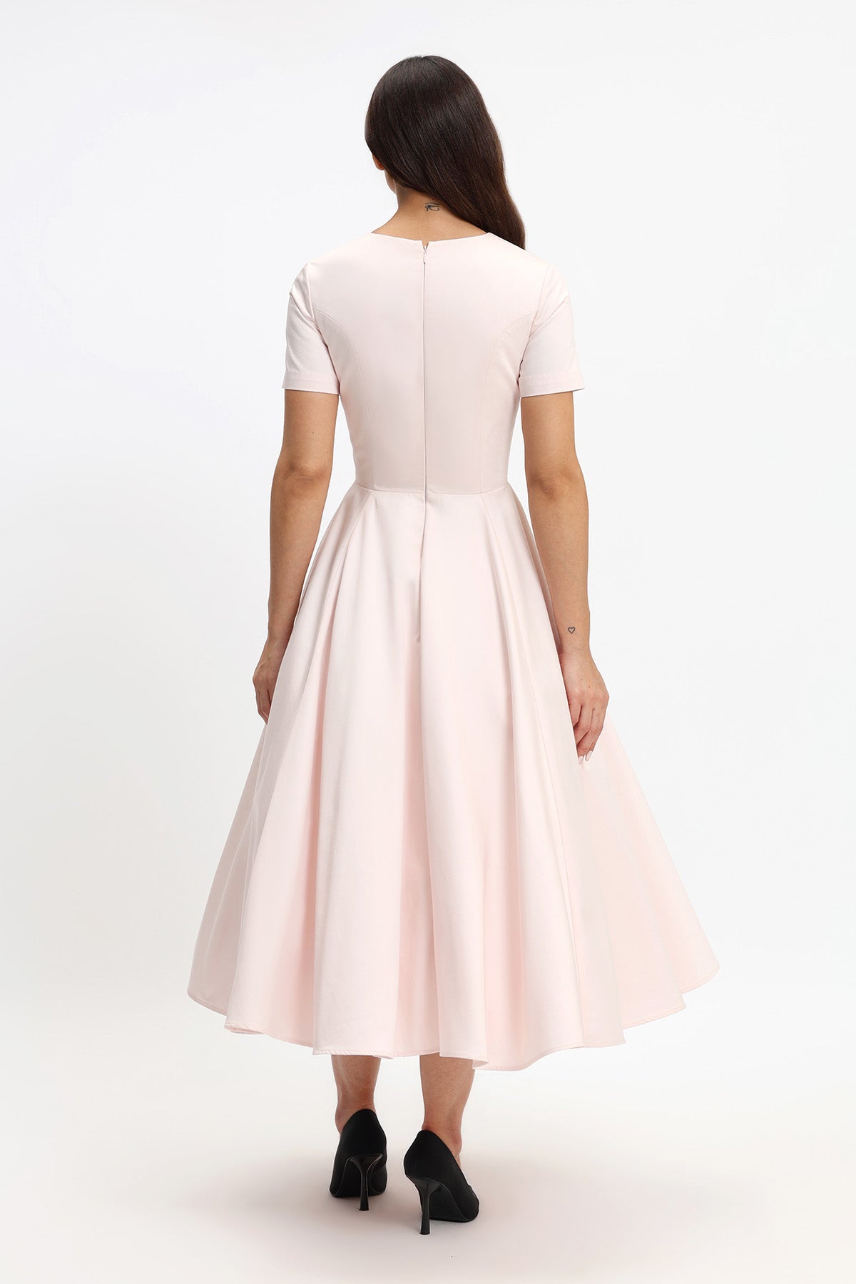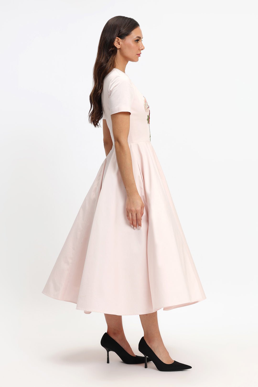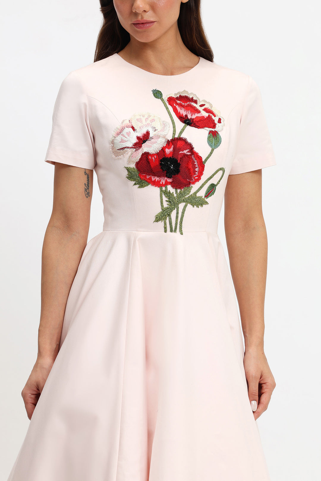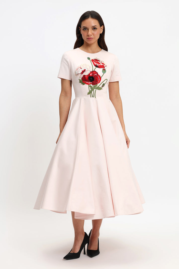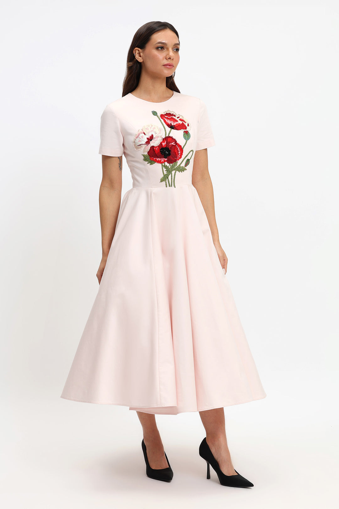 Short Sleeves Midi with Botanical Hand Embroidery and Side Pockets