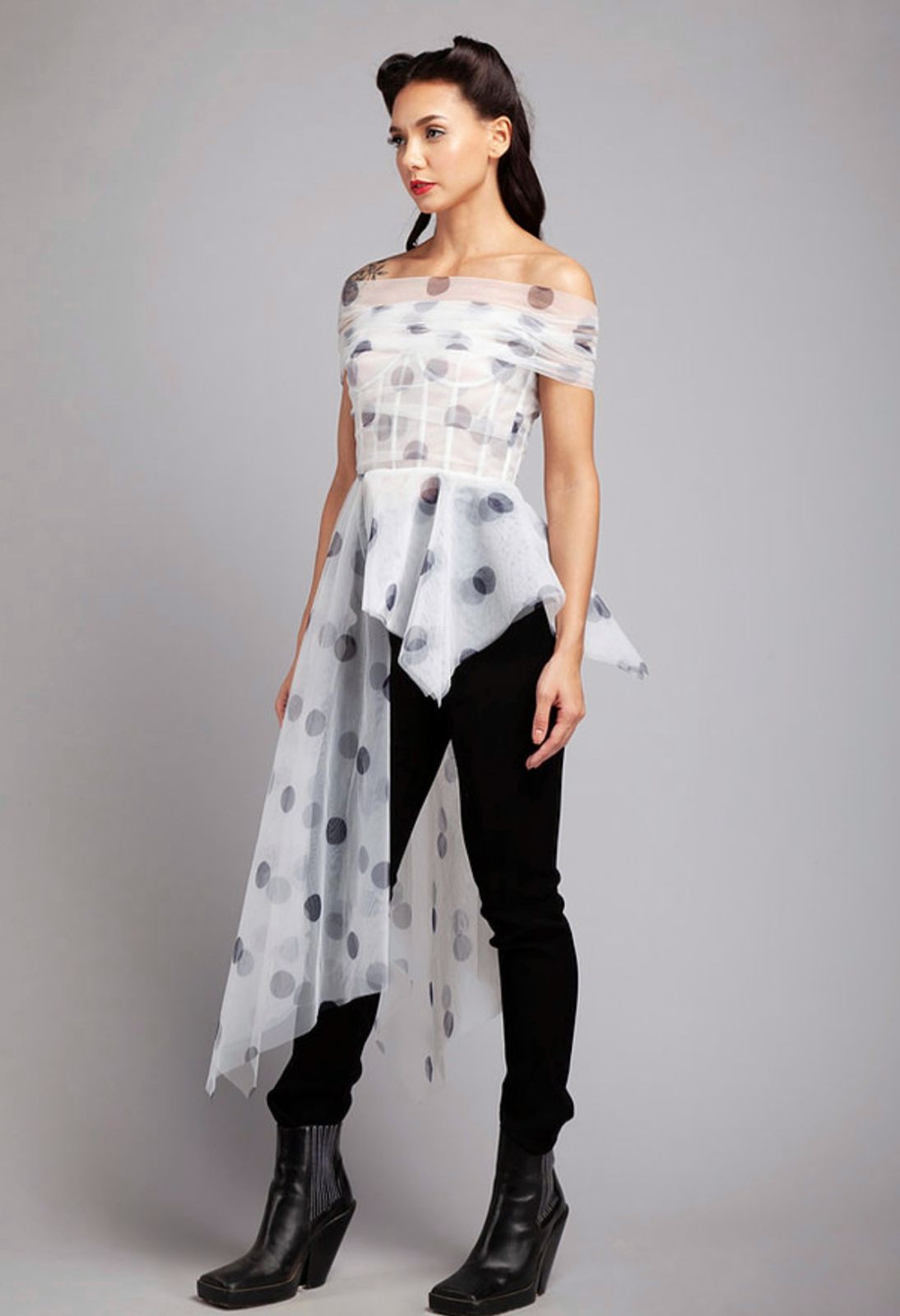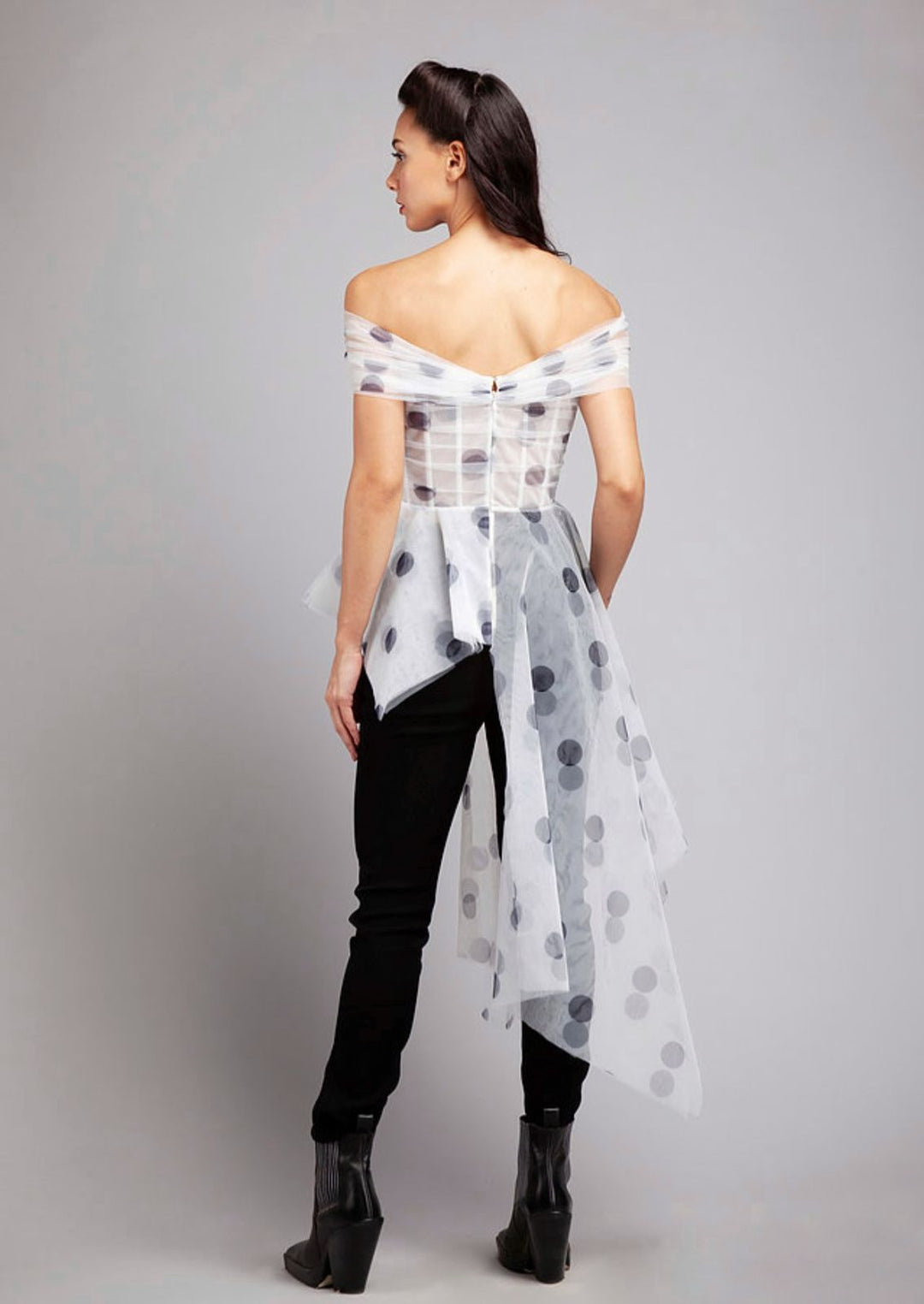 Side trail top with shoulder drape