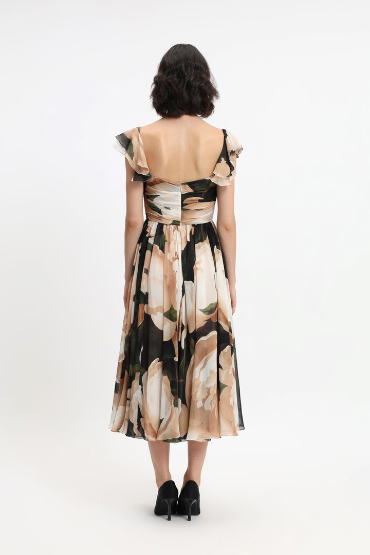 Square Neck Chiffon Midi