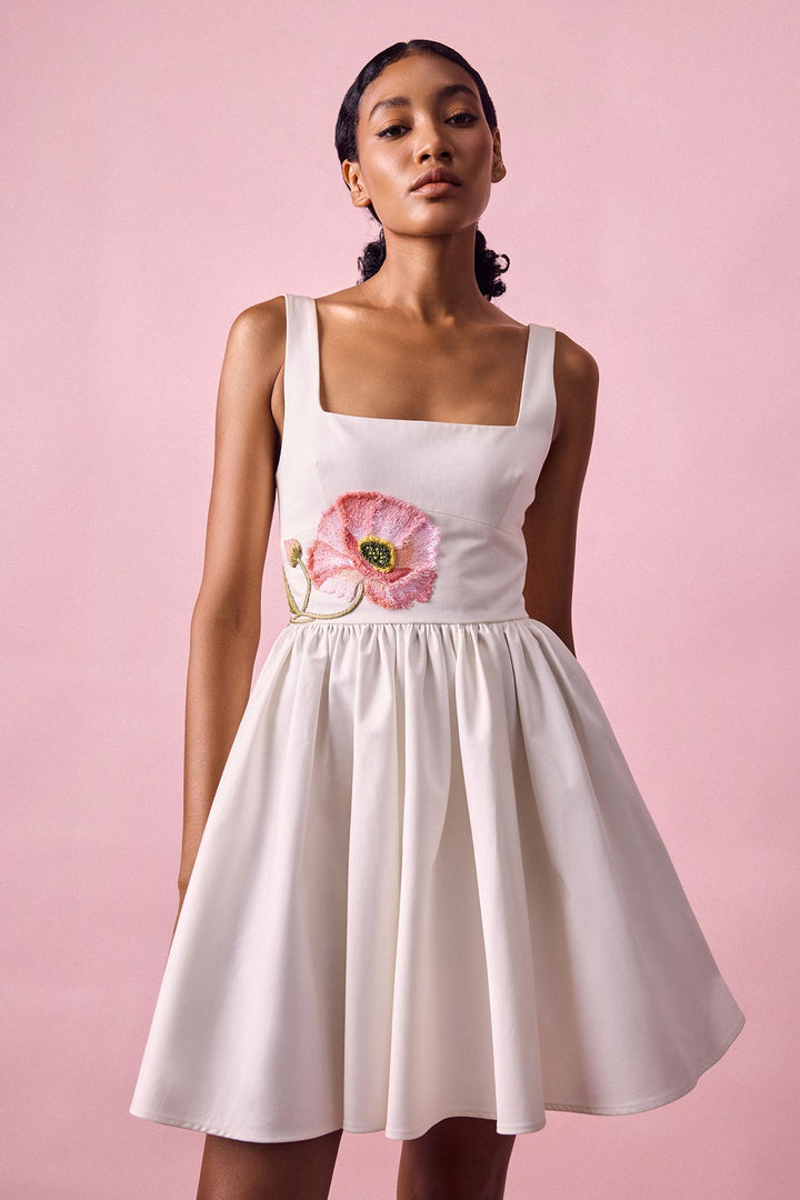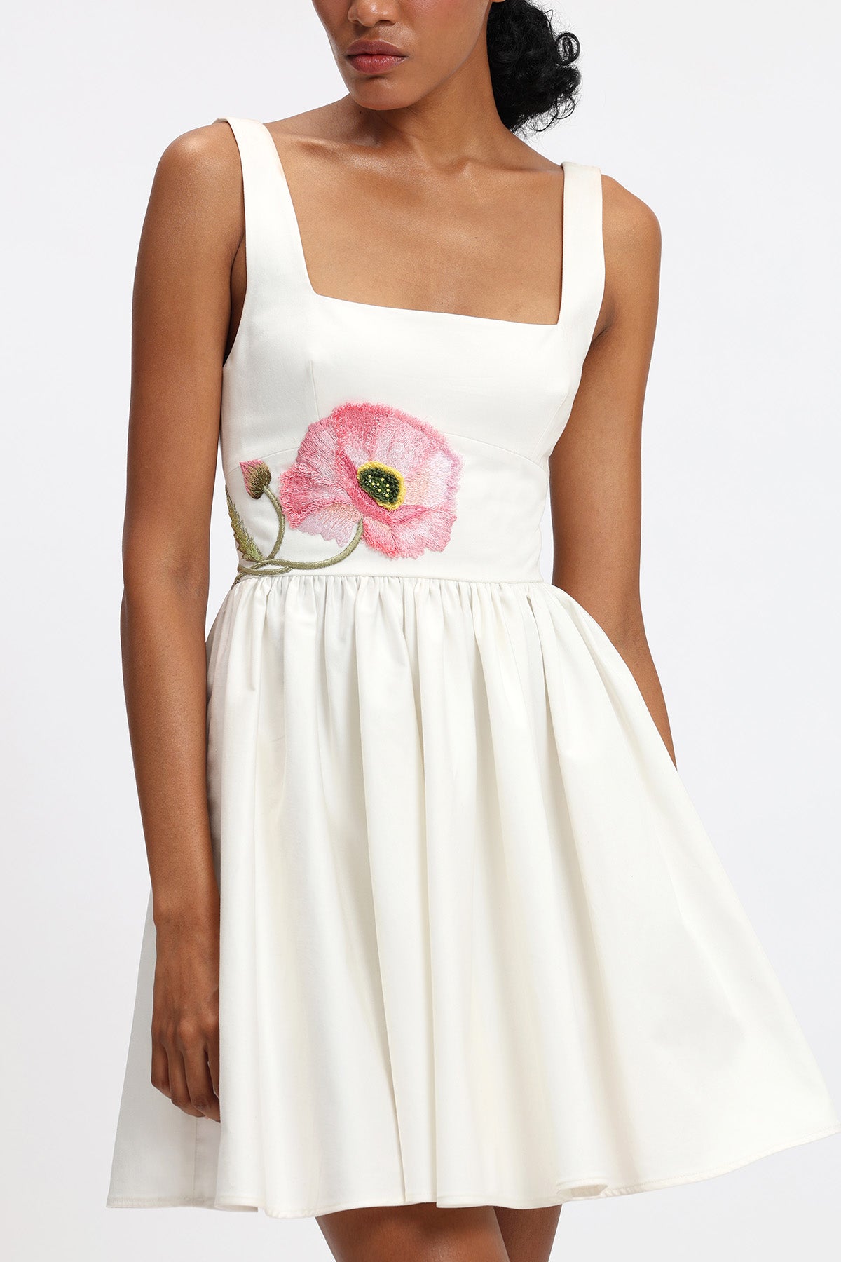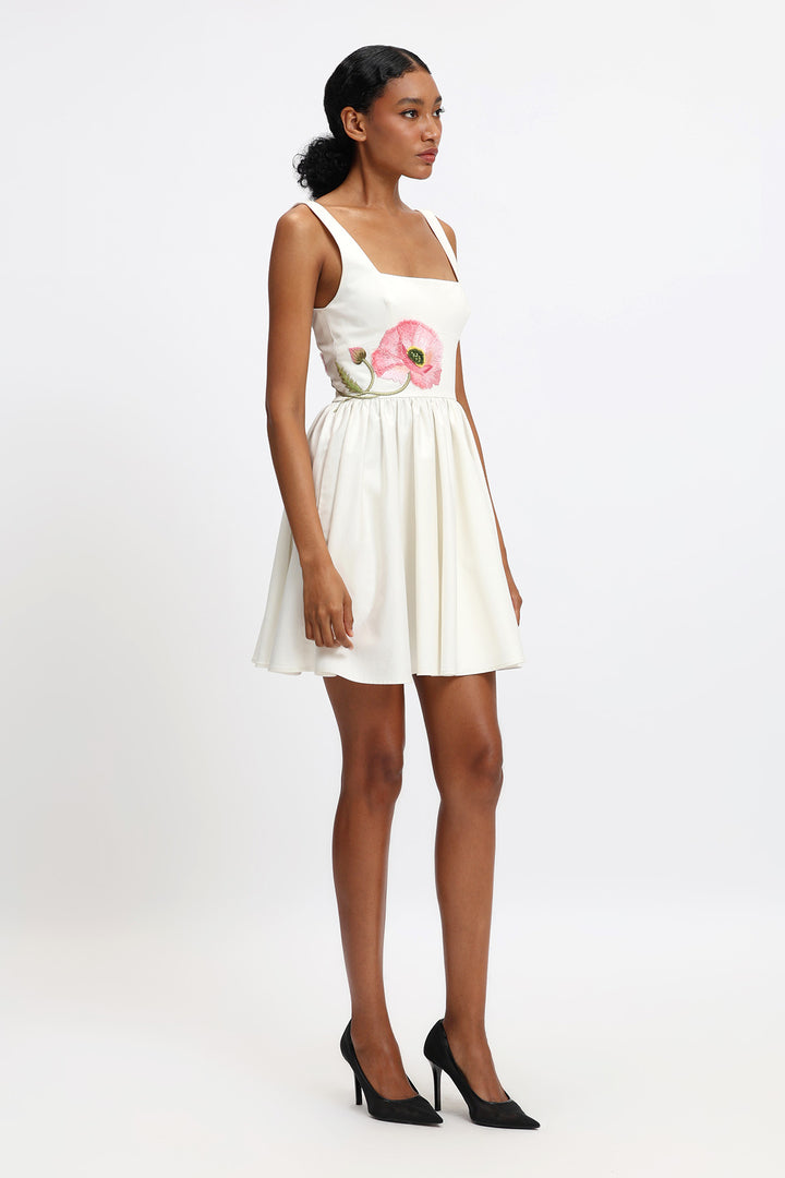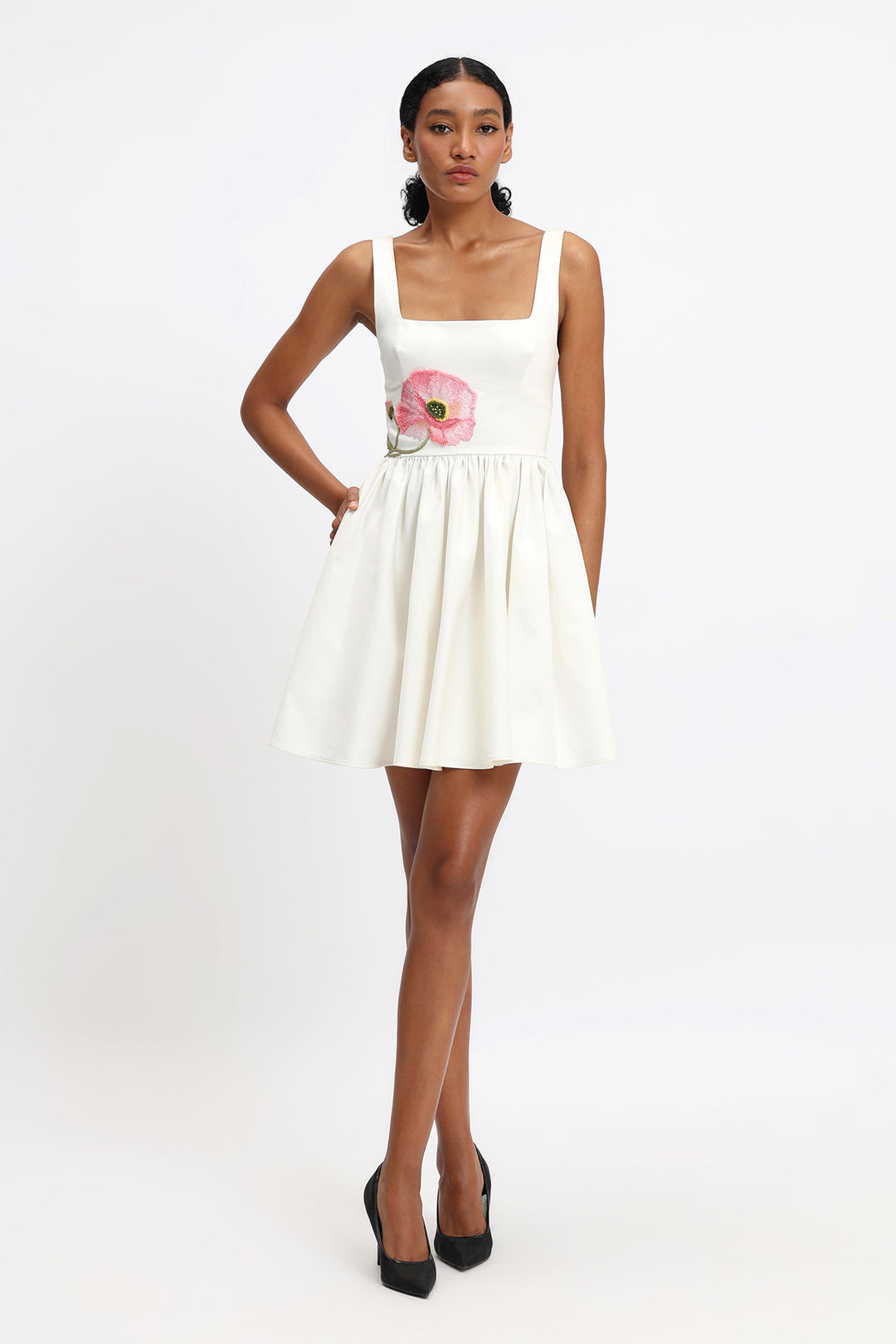 Square Neck Mini with Botanical Hand Embroidery and Side Pockets