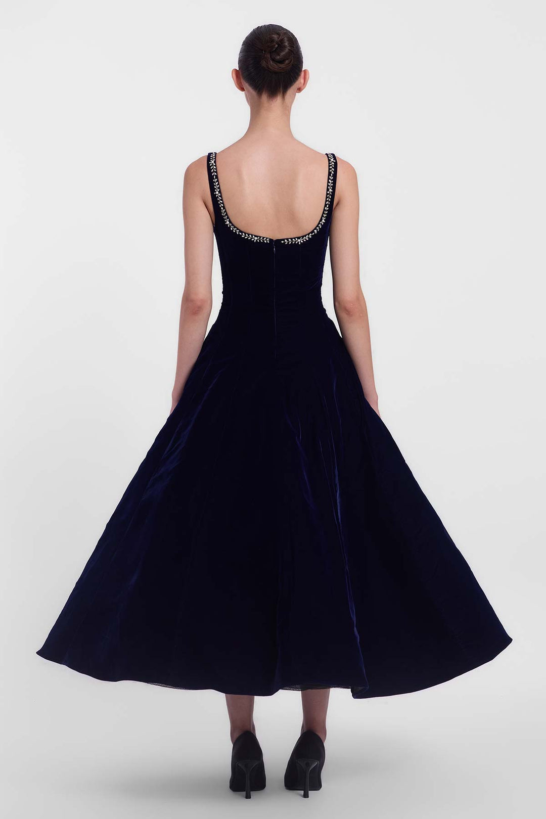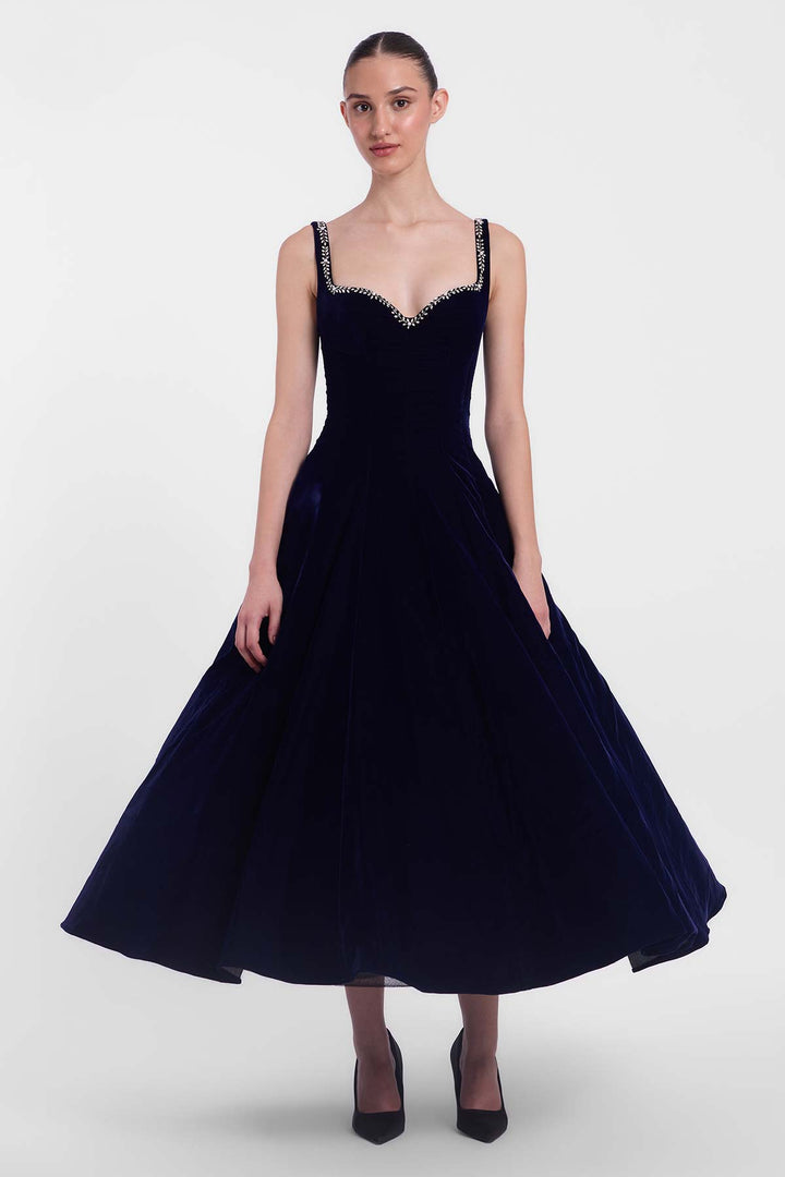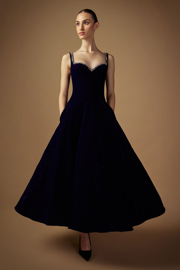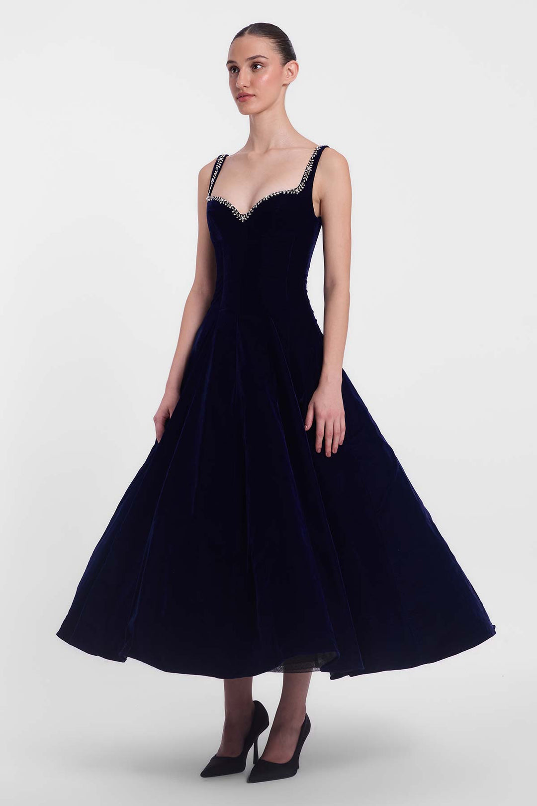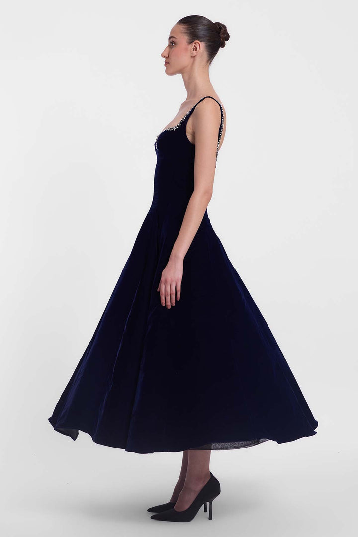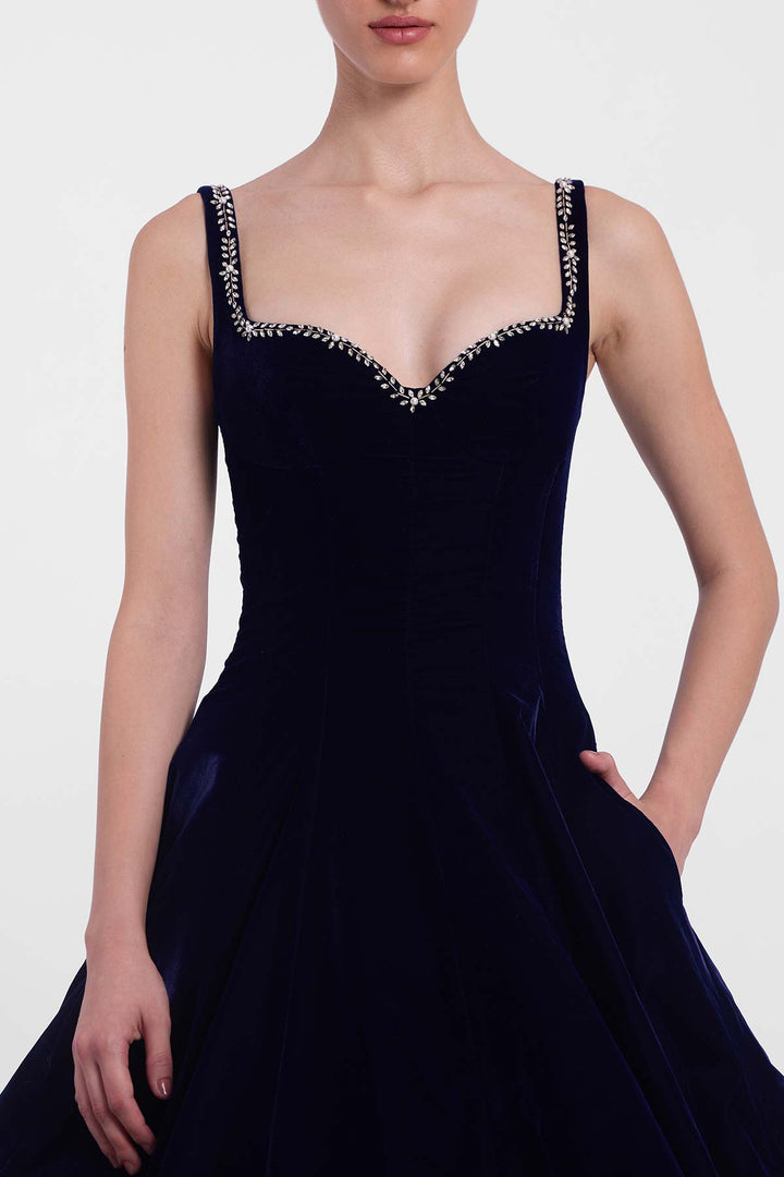 Sweetheart Neckline Midi with Crystal Detailing on The Neck.